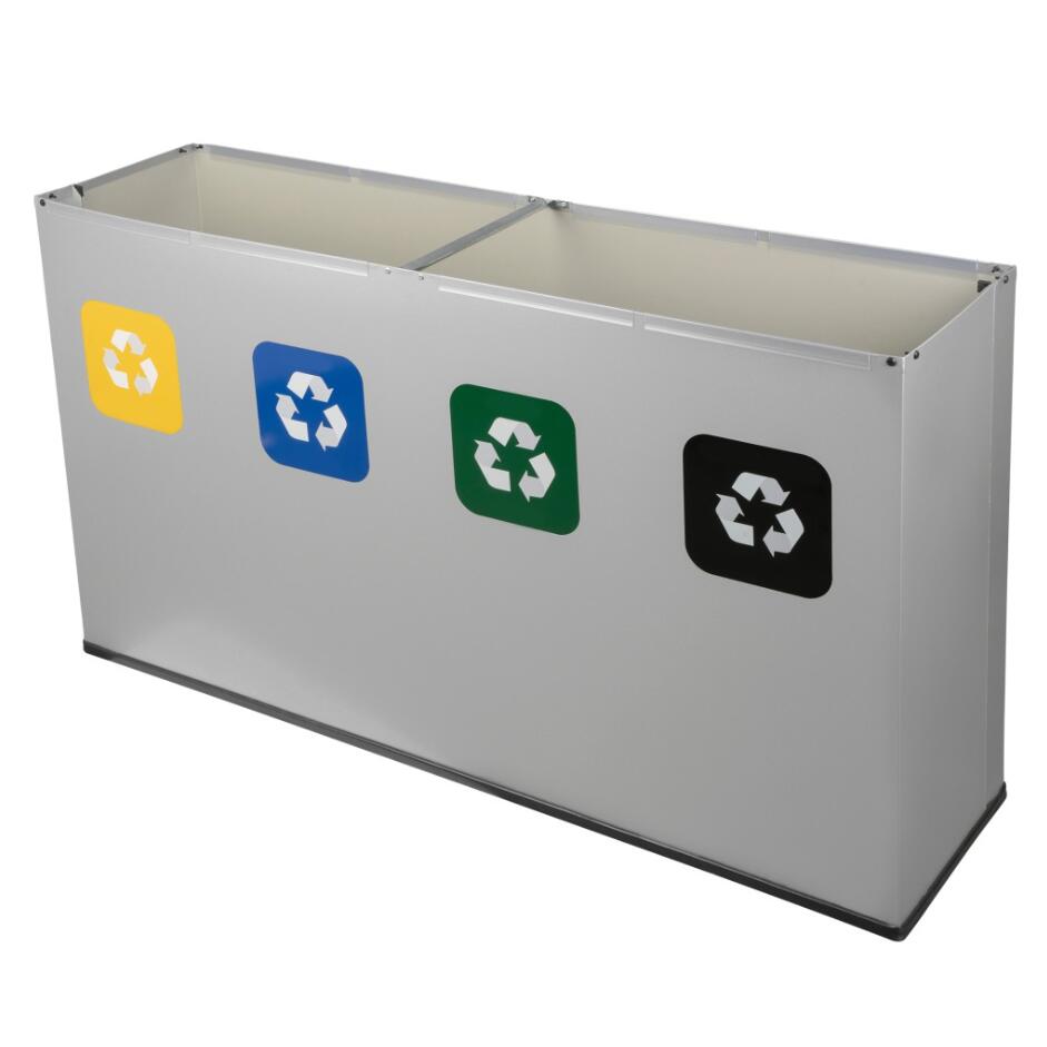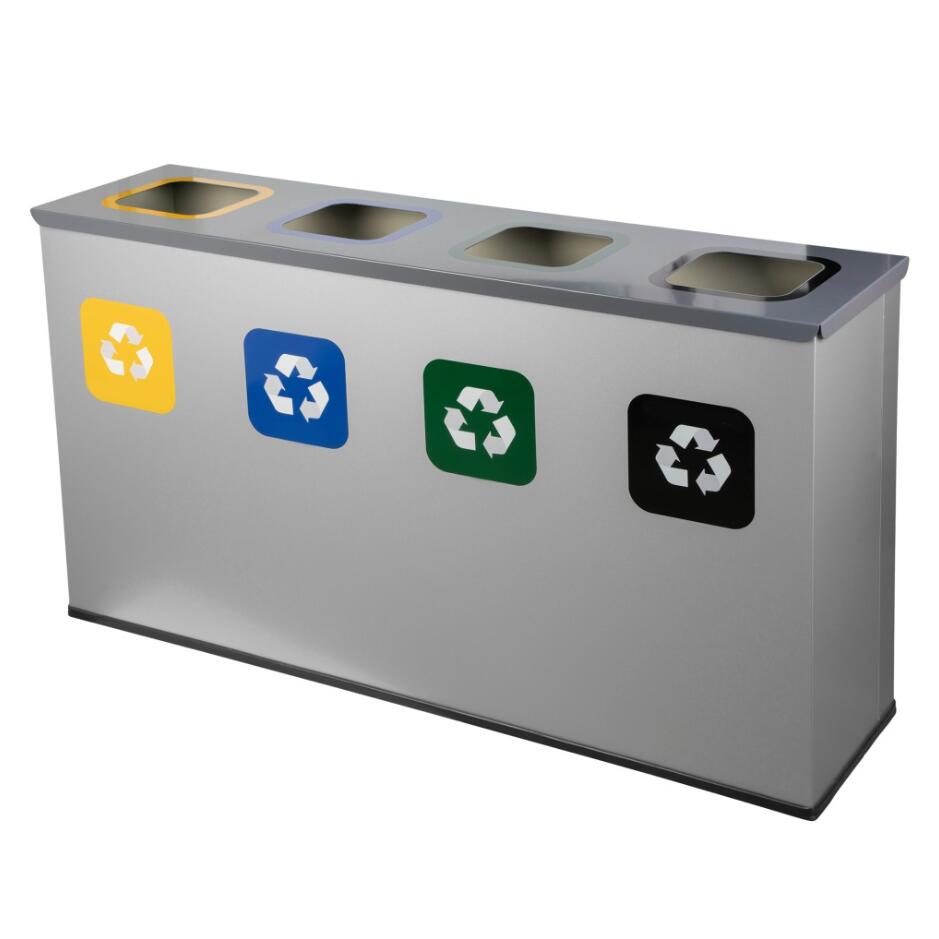 Stația de separare a deșeurilor 4x60L, este o soluție solidă și funcțională, concepută pentru sortarea convenabilă a patru tipuri de deșeuri într-o singură unitate. Este perfectă pentru spații publice mari, birouri, restaurante și zone cu trafic intens, unde estetica, confortul și funcționalitatea contează.