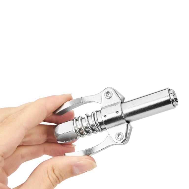 Duza profesională cu autoblocare pentru pistolul de ungere, modelul KD10871 , de la Kraft & Dele, este o soluție unică ce asigură fiabilitate, eficiență și confort în toate condițiile de lucru. Dispune de un design îmbunătățit cu 6 fălci . Duza noastră pentru pistolul de ungere oferă o stabilitate excepțională și o cuplare sigură a niplului. Chiar și la presiuni extreme de până la 10.000 PSI , fălcile întărite și etanșarea de înaltă calitate asigură o lubrifiere sigură și eficientă, fără riscul de scurgeri.