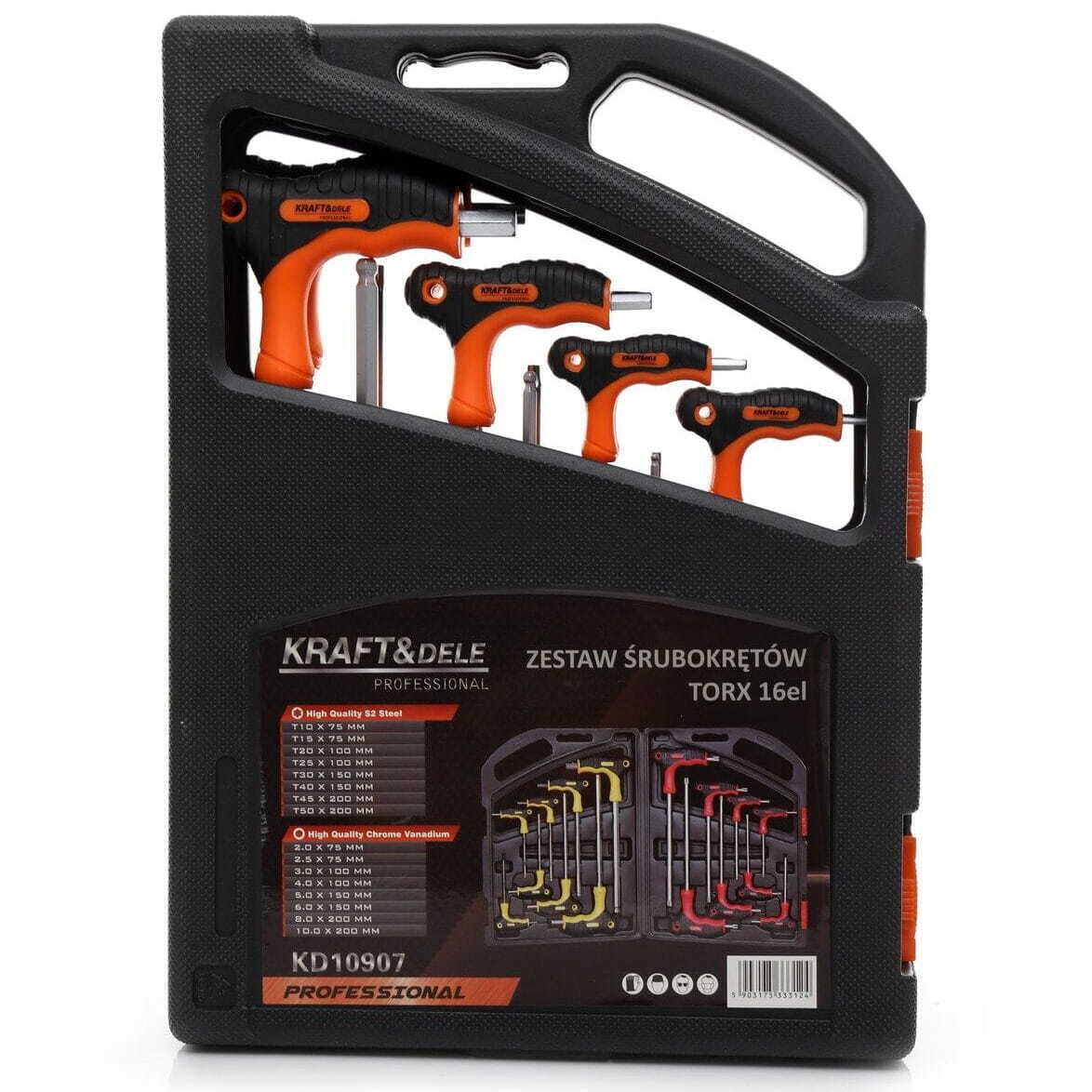 Este un set profesional de șurubelnițe TORX de la KRAFT&DELE, fabricate din oțel S2 de cea mai înaltă calitate și oțel crom-vanadiu.