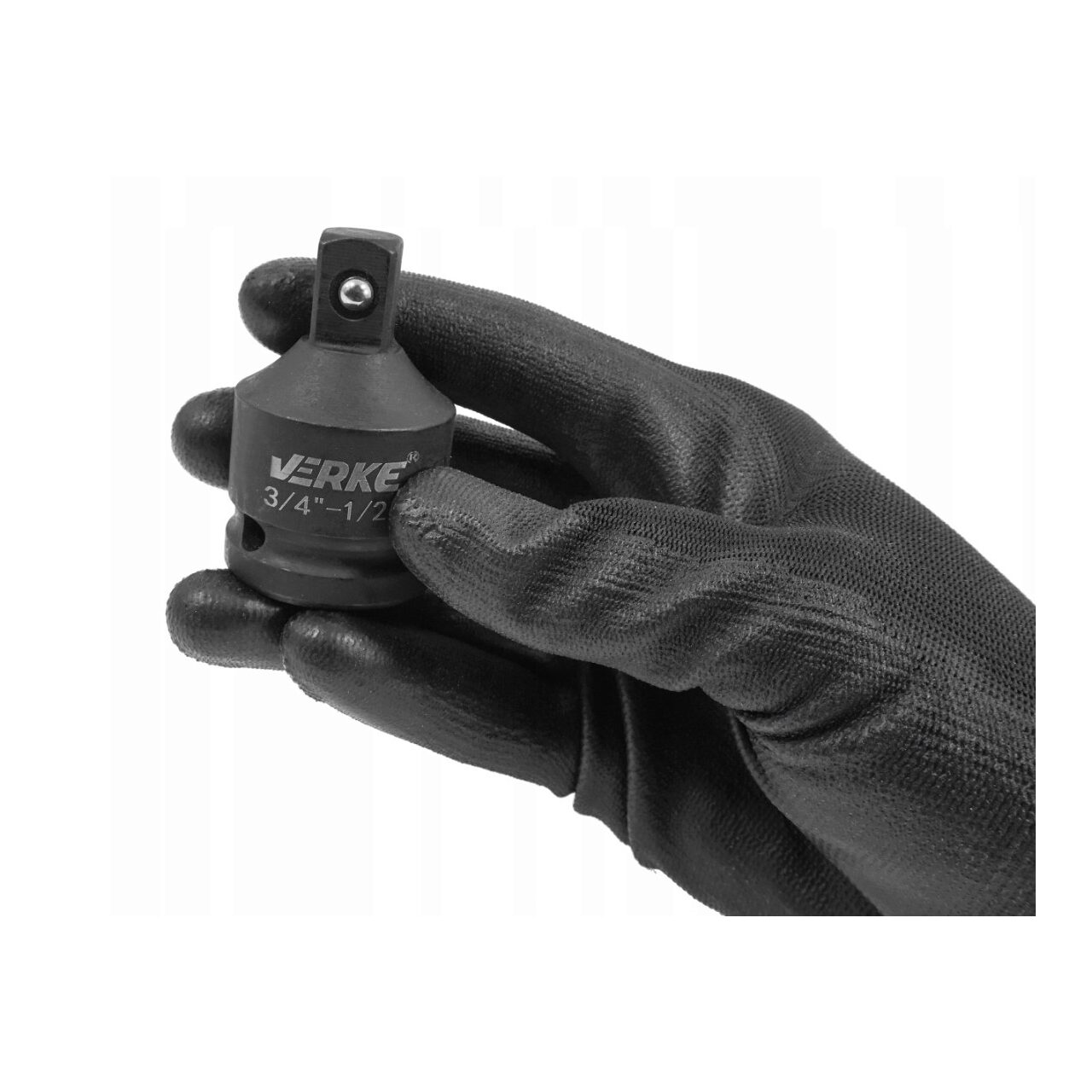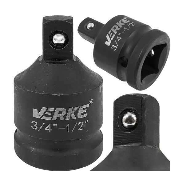 Un adaptor de impact specializată de la VERKE, folosită pentru a schimba standardul de antrenare de la 3/4" la 1/2". Funcționează cu dispozitive pneumatice care funcționează în condiții foarte dificile sub sarcini variabile în service profesional. Adaptoarele sunt realizate din oțel forjat și călit de cea mai înaltă calitate, ceea ce garantează o durată lungă de viață. Aceste caracteristici înseamnă că reducția VERKE își păstrează dimensiunea nominală și nu se rupe sub influența lucrărilor de impact.