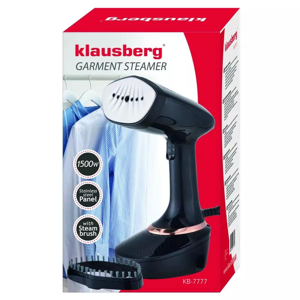 Aparat de calcat cu abur, vertical, negru, otel inoxidabil, 1500W, capacitate 400 ml, Klausberg