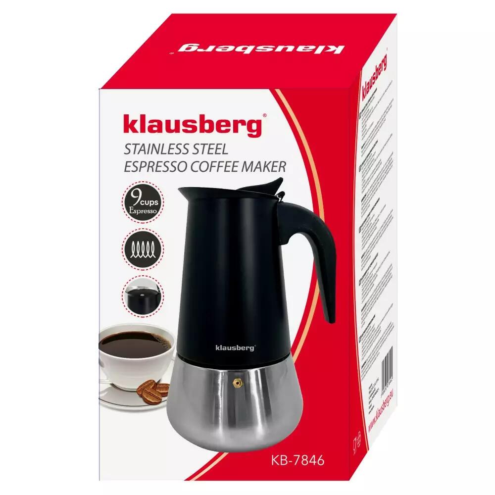 Aparat pentru cafea, espressor, fabricat din otel inoxidabil, 9 cani 450 ml, negru/argintiu, Klausberg