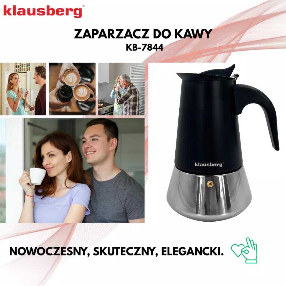 Aparat pentru cagea, espressor, fabricat din otel inoxidabil, 4 cani, negru/argintiu, Klausberg