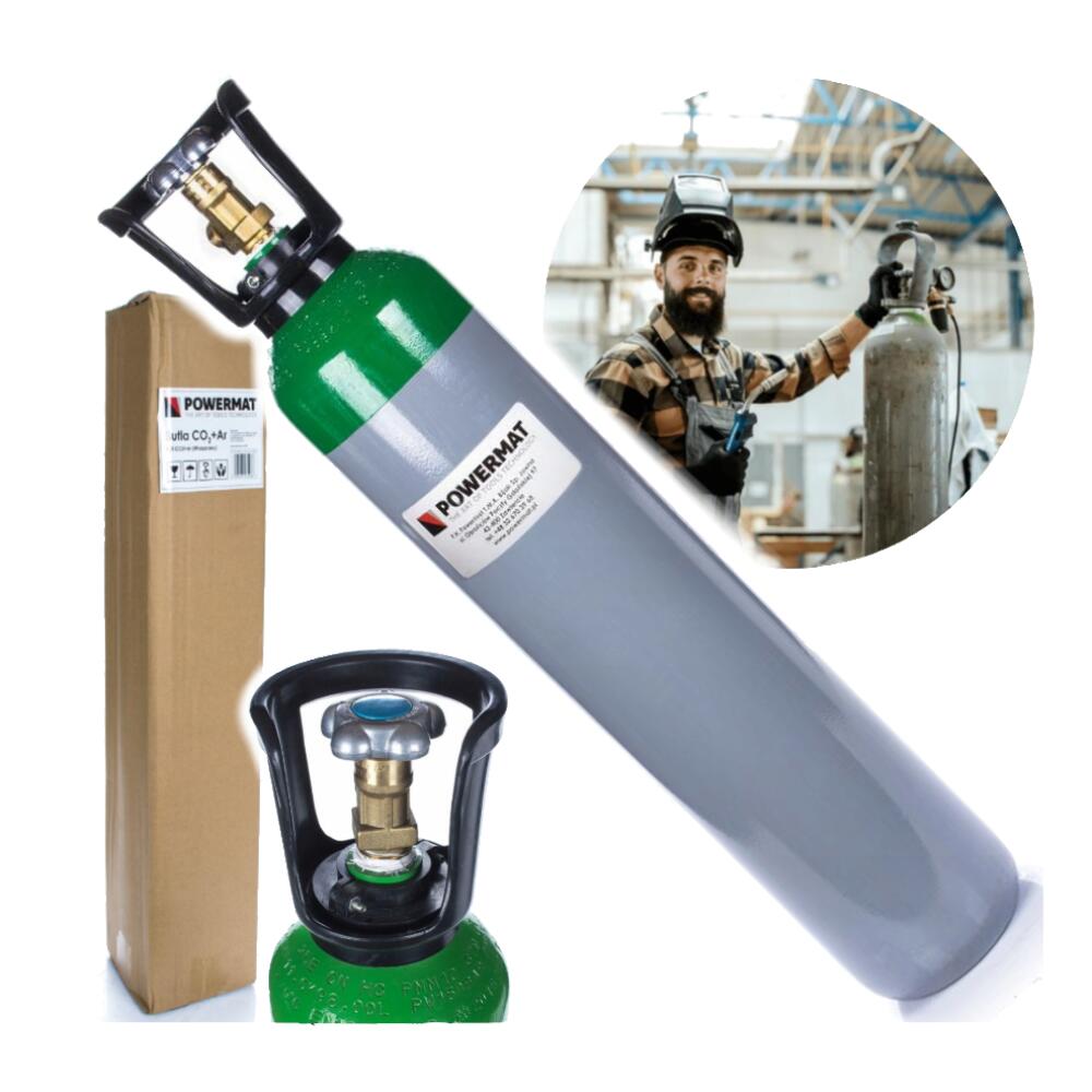 Butelia poate fi umpluta cu dioxid de carbon de argon (82%) (18%) destinat utilizarii in sudura si industrie.