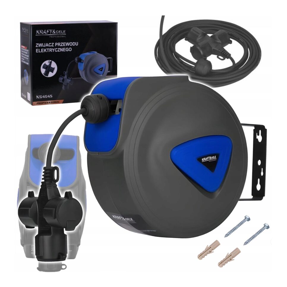 Cablu electric prelungitor cu tambur retractabil automat, 10m, 3 x 1.5 mm, Kraft