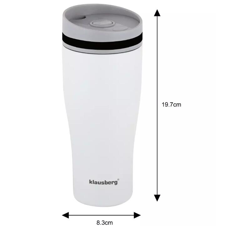 Versiunea albă a cănii termice Klausberg este simplă, dar plină de posibilități. Culorile contrastante - alb în partea de jos și gri-negru în partea de sus - adaugă profunzime și rafinament.