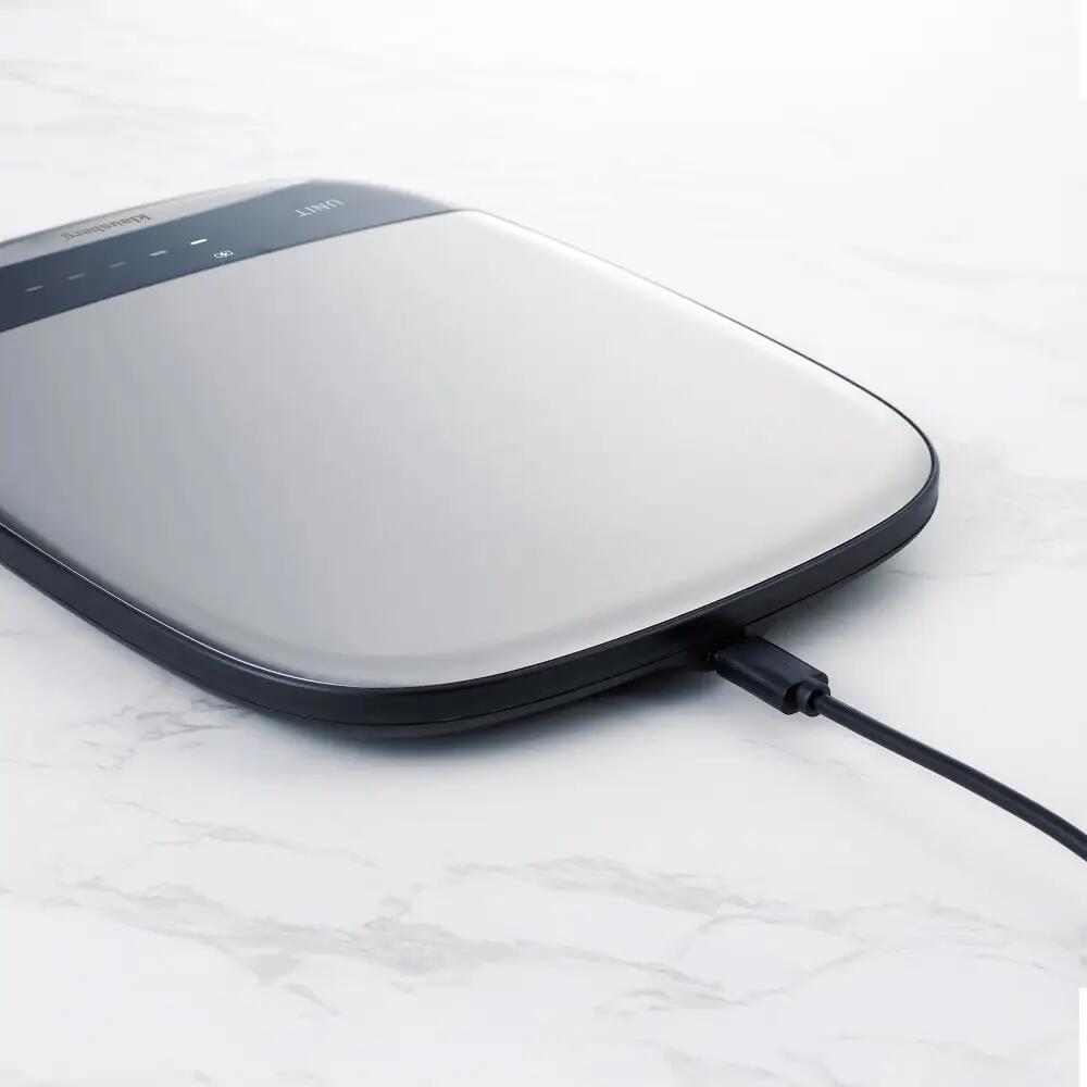 Având o suprafață durabilă din oțel inoxidabil, un afișaj LED mare și o baterie reîncărcabilă USB-C, este combinația perfectă între funcționalitate și design elegant.