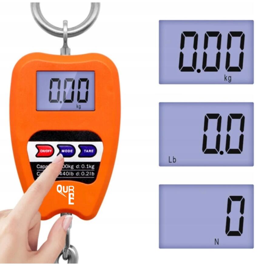 Cântarul cu cârlig are o gamă de cântărire de până la 200 kg cu o precizie de 100 g.