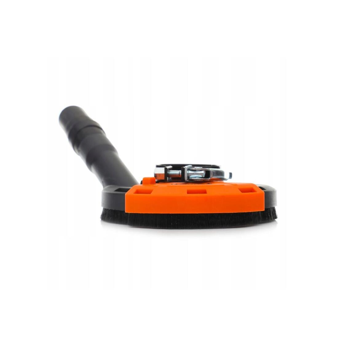 Apărătoarea este montată interschimbabil cu apărătoarea polizorului unghiular din fabrică, pe flanșa axului.