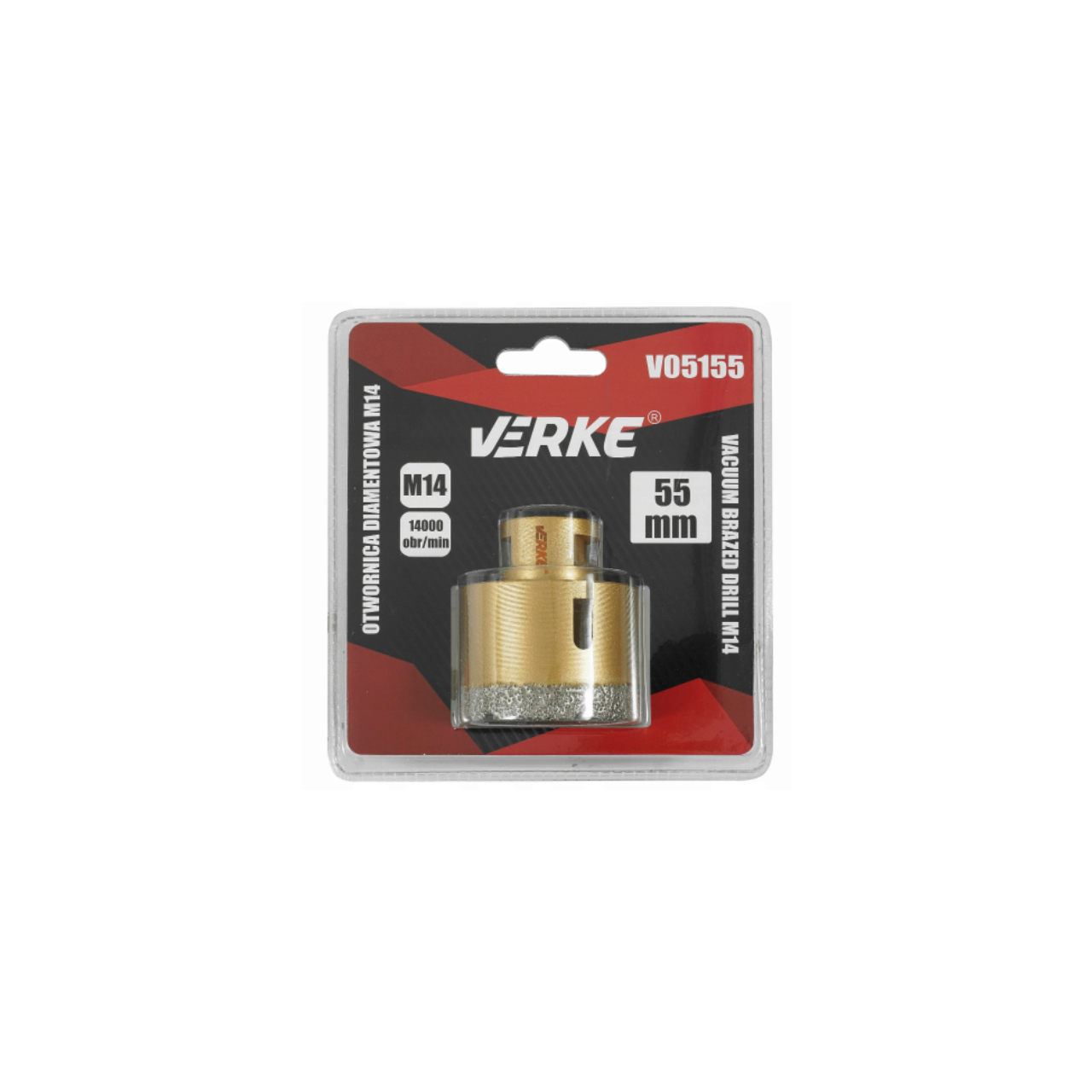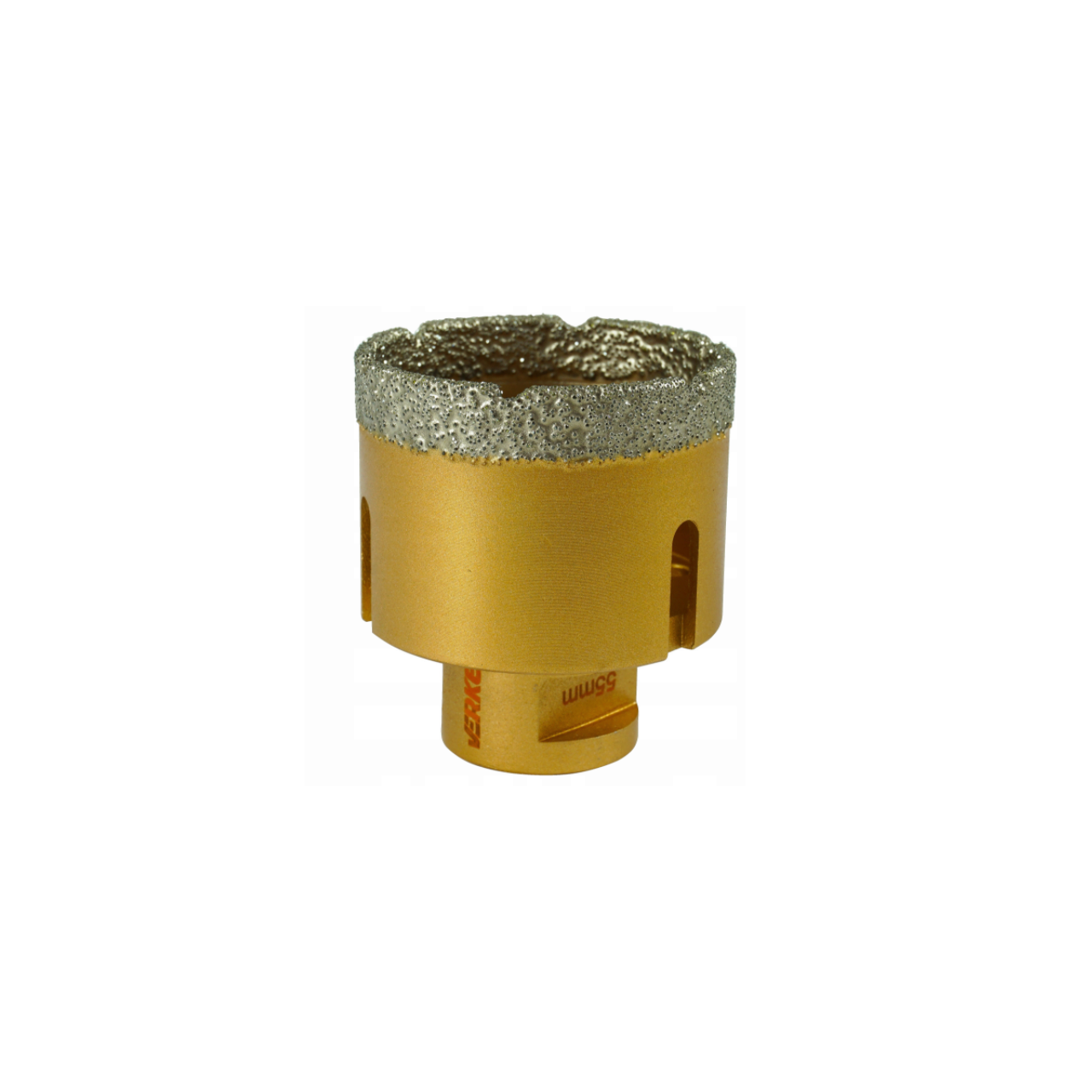 Carota diamantata, cu diametrul de 55 mm, echipat cu filet de montare M14 pentru montare in polizoare unghiulare. Perfect pentru a face gauri in materiale precum gresie, placi ceramice, clincher, placi si piatra naturala.