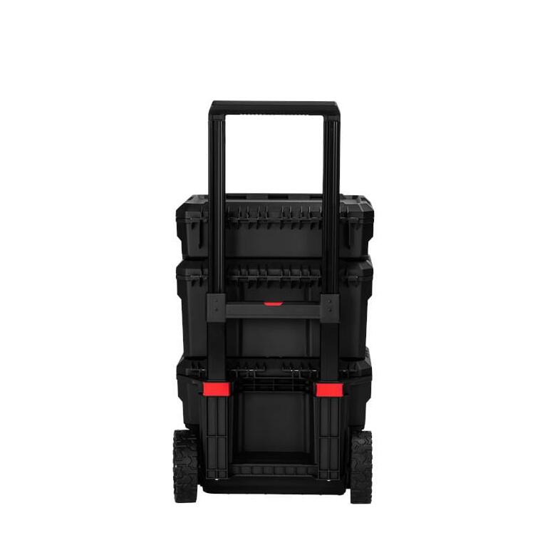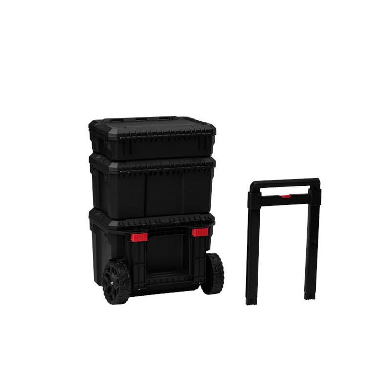 Este un cărucior de scule practic și mobil, echipat cu trei cutii spațioase, ideal pentru depozitarea și transportul sculelor, accesoriilor și componentelor de asamblare.