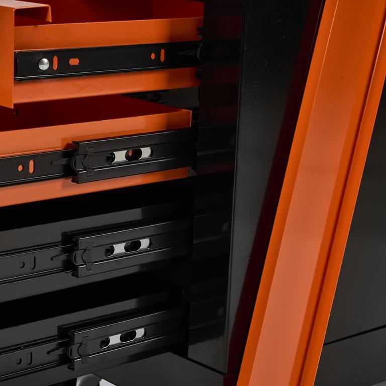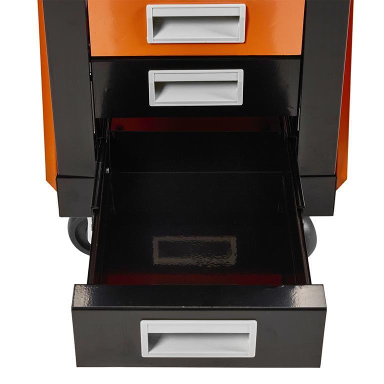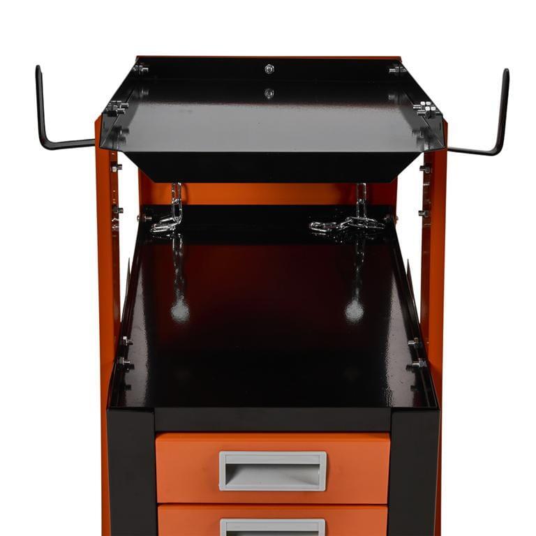 Căruciorul are un raft superior extins și 4 sertare pentru depozitarea uneltelor.