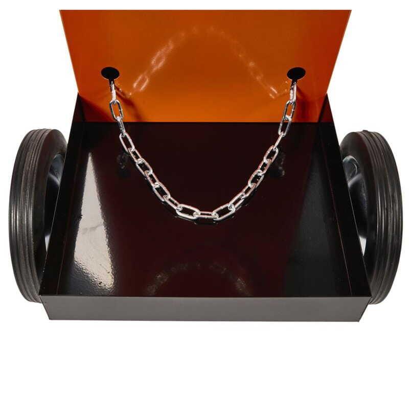 Un cărucior conceput pentru a transporta aparate de sudură împreună cu un cilindru și accesorii.