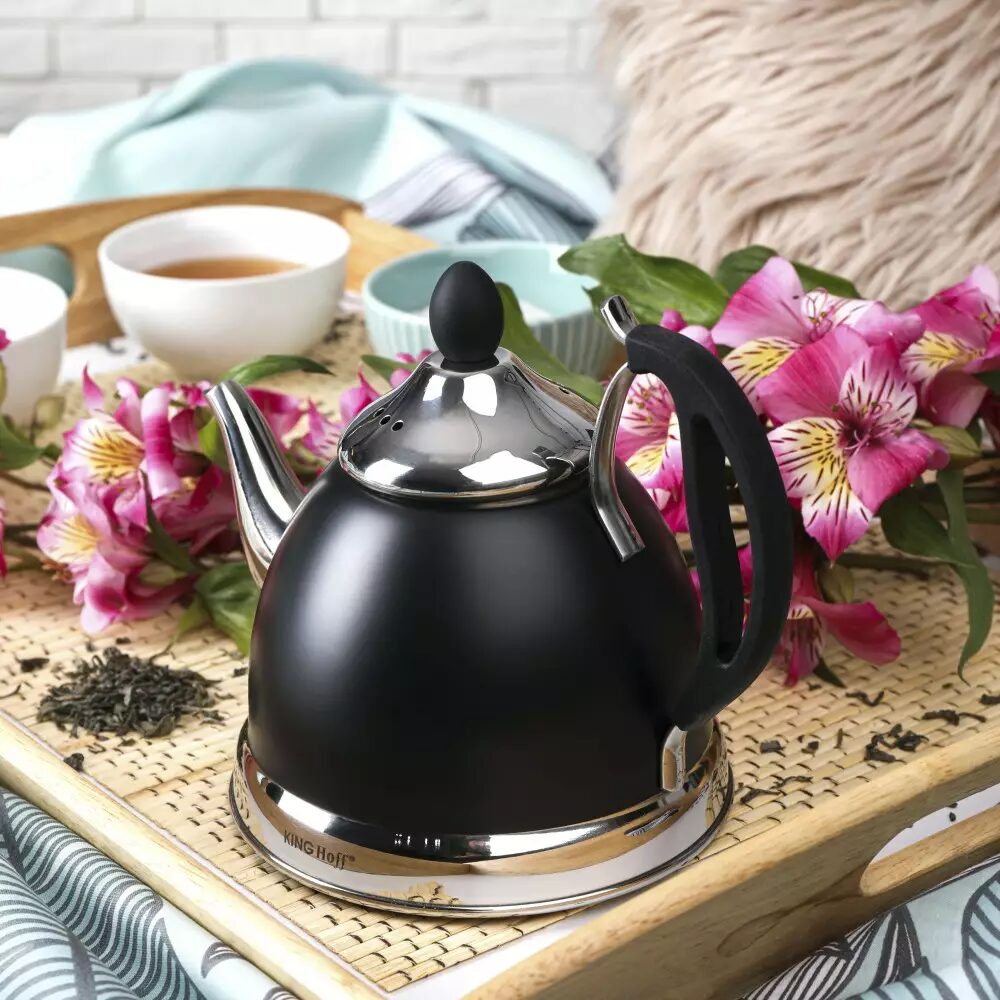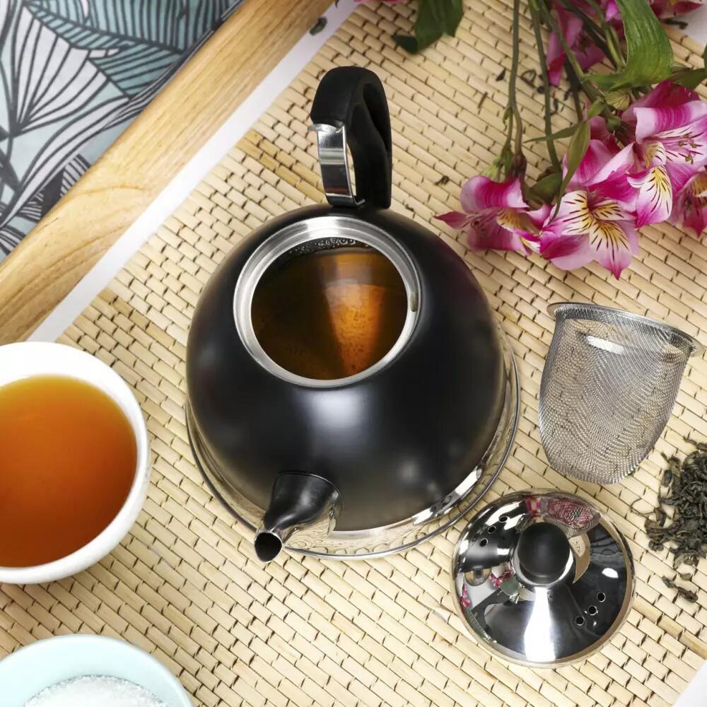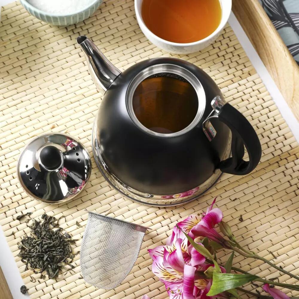 Ceainic cu sita, inox 1l, negru, Kinghoff