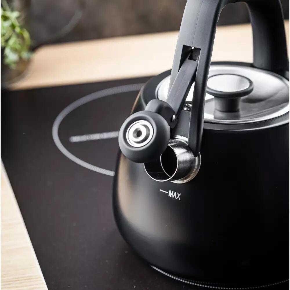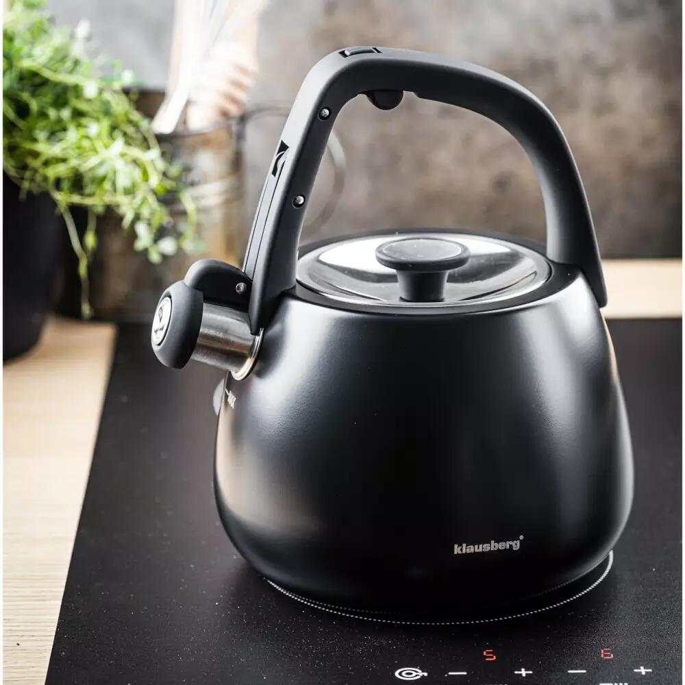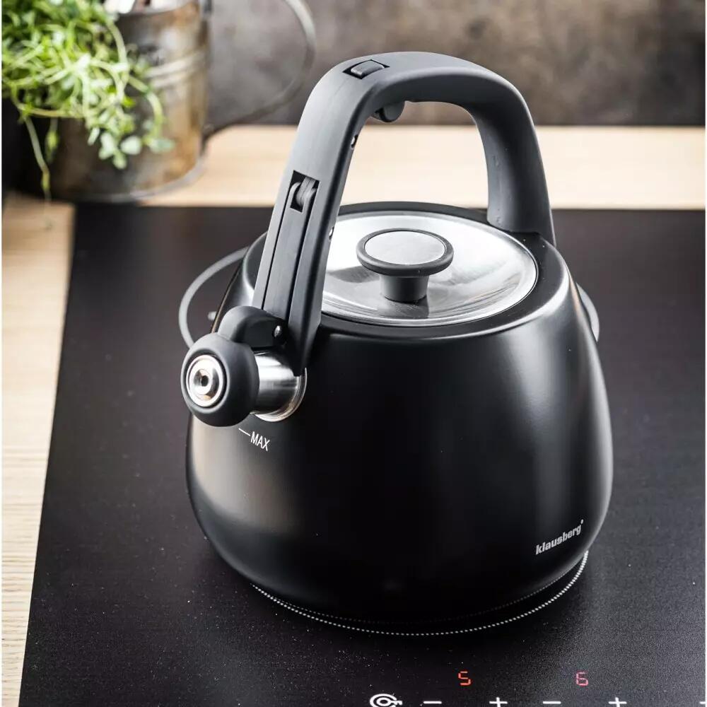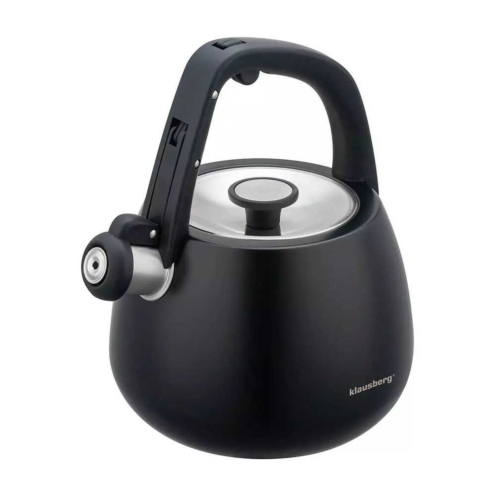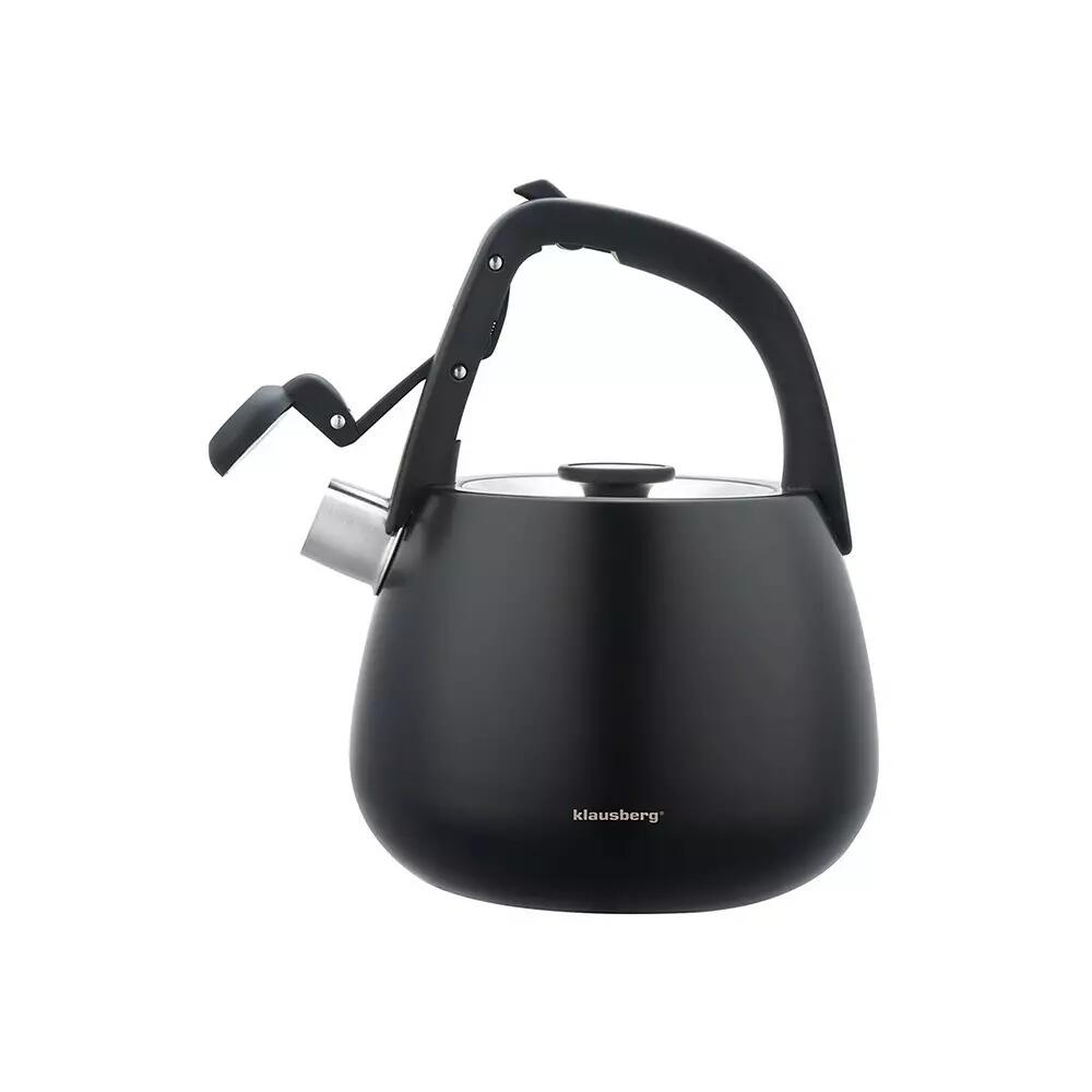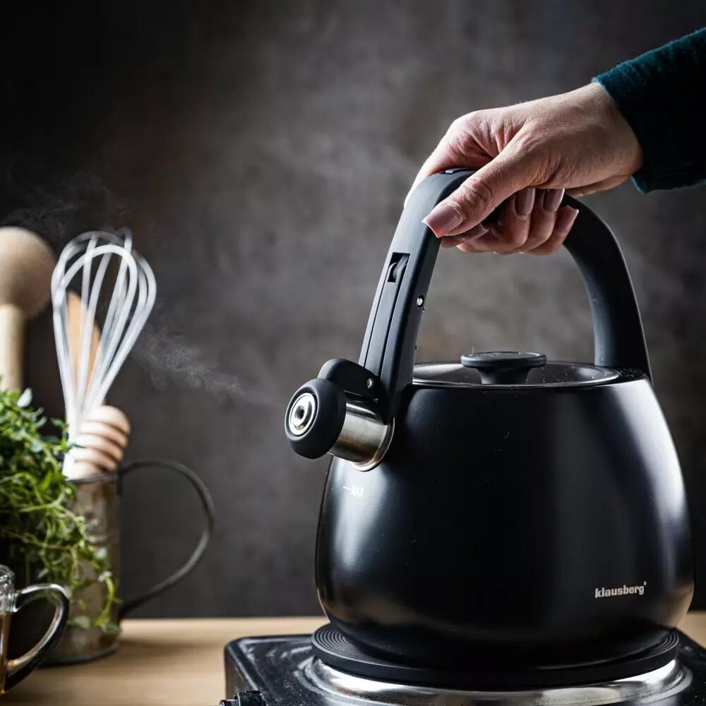 Ceainic, fierbator din otel inoxidabil cu fluier, negru, capacitate 2,5 litri, Klausberg
