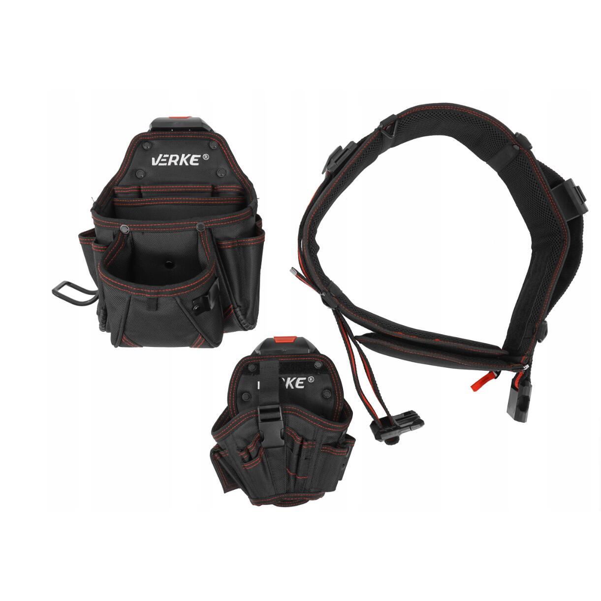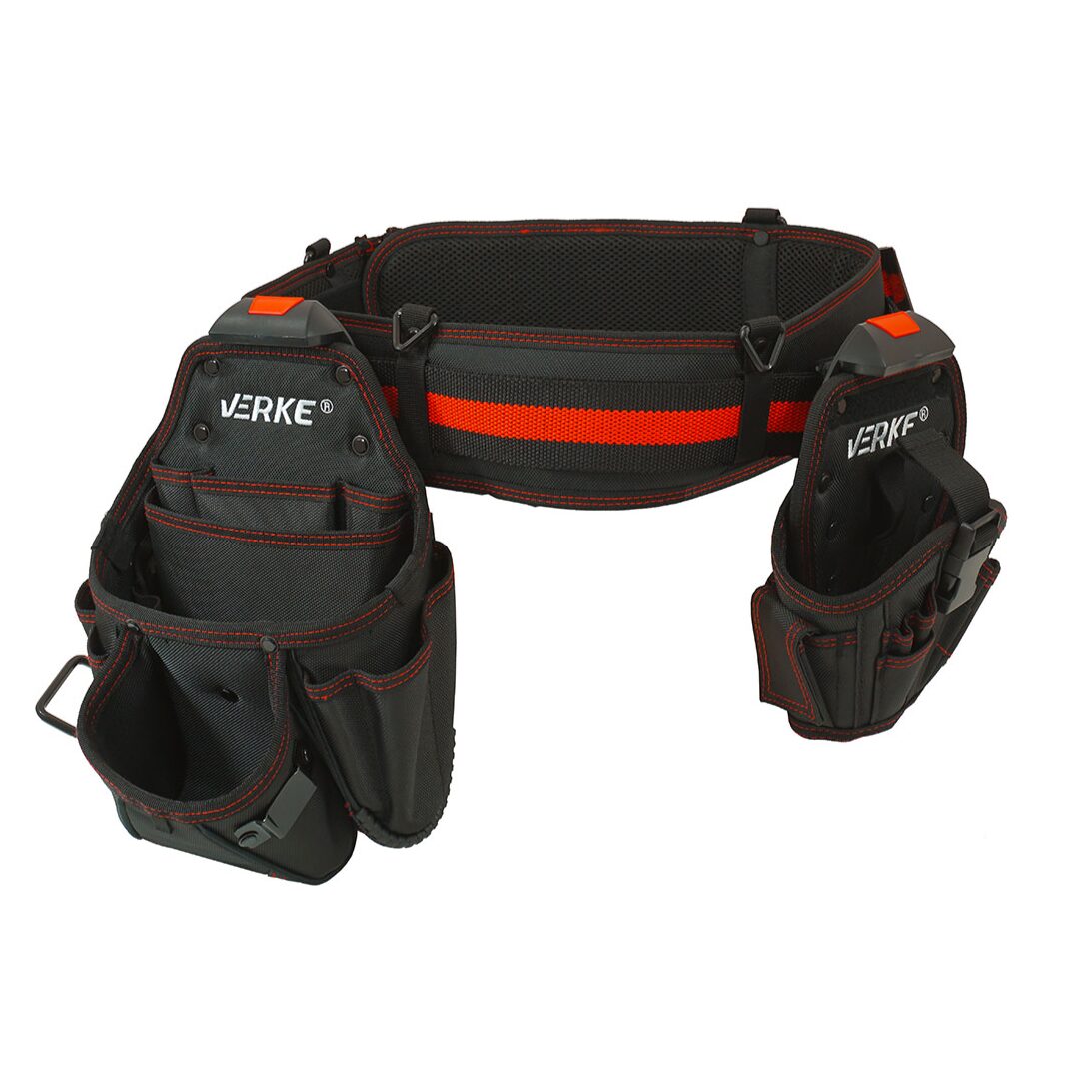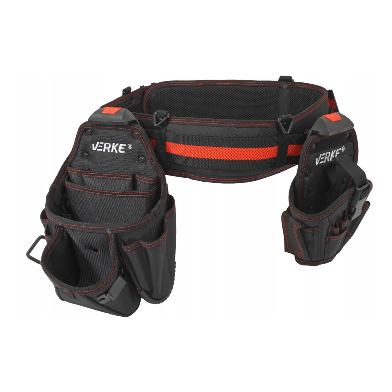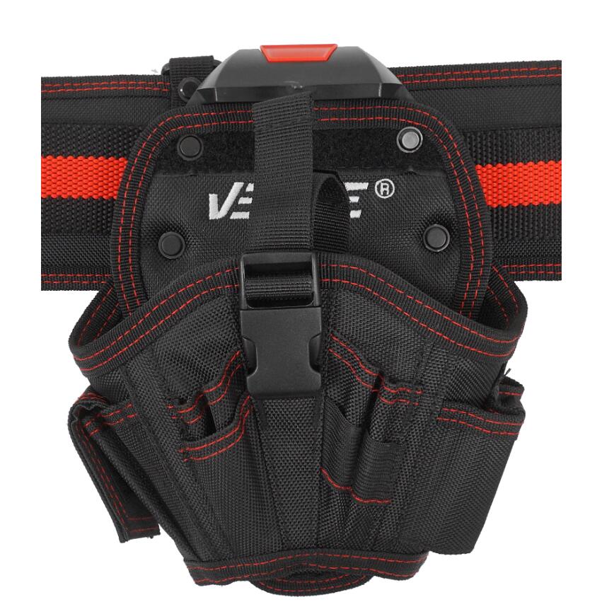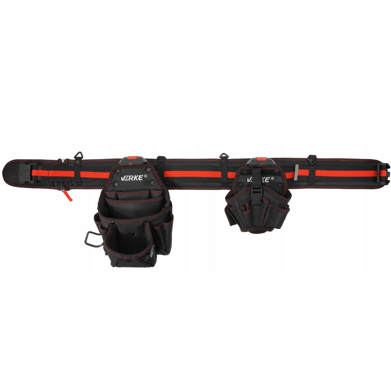 Curea pentru scule cu două buzunare glisante cu numeroase incaperi și o buclă pentru ciocan. Fiecare geantă se atașează la un mâner cu clic. Curea ergonomică puternică prinsă cu Velcro, fermoar și prinsă suplimentar cu cataramă. Are suporturi pentru montarea hamurilor. Material: poliester 1680D. Țesăturile cu țesături 1680D sunt printre cele mai durabile materiale.