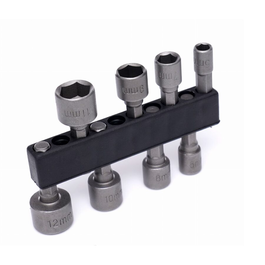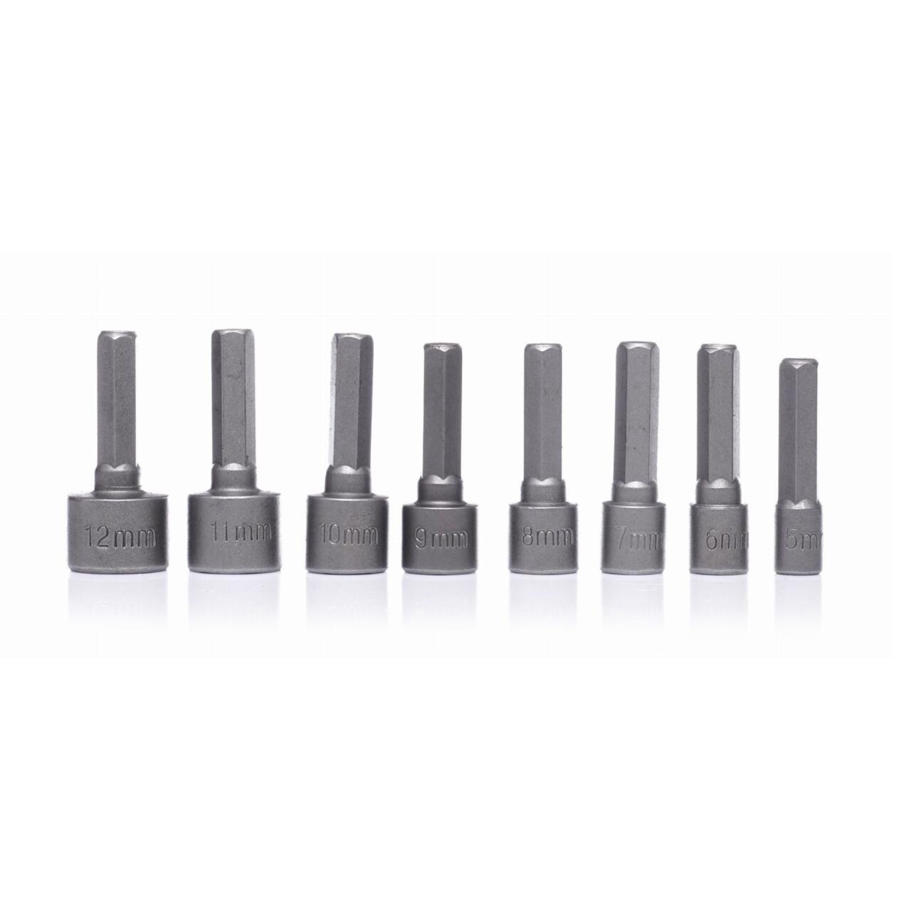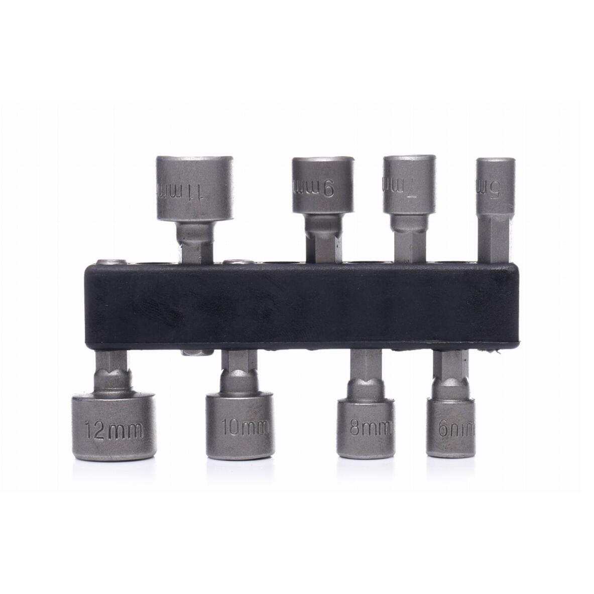 Este un set complet de adaptoare hexagonale cu prindere 1/2", 3/8" si 1/4", in diferite lungimi, compatibile cu majoritatea bormasinilor, autofiletantelor si masinilor de impact.