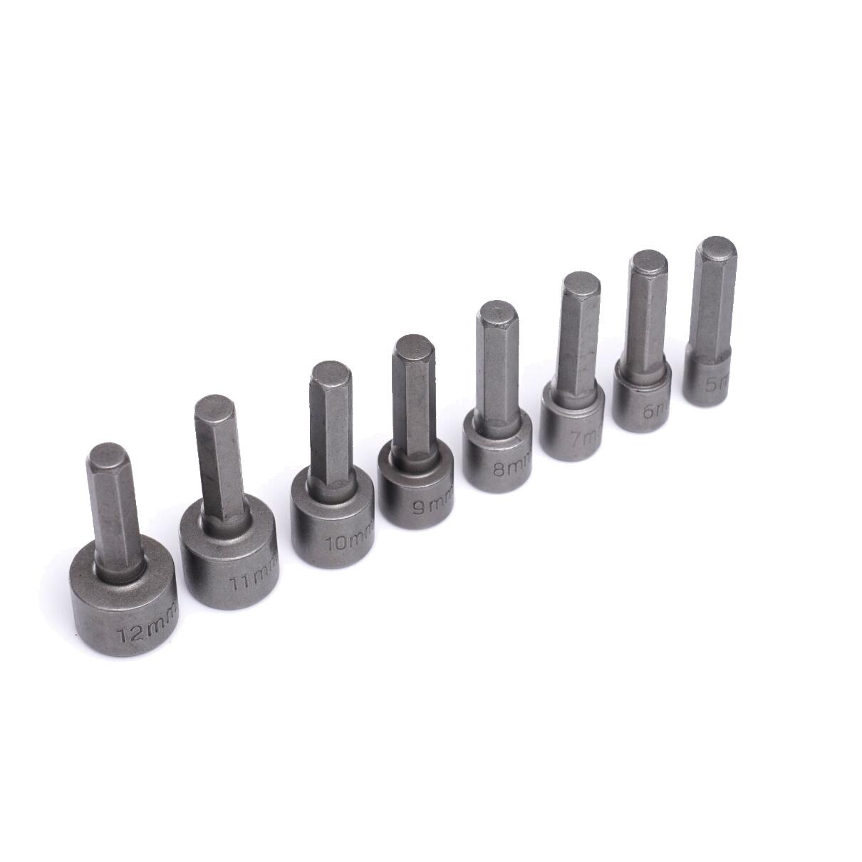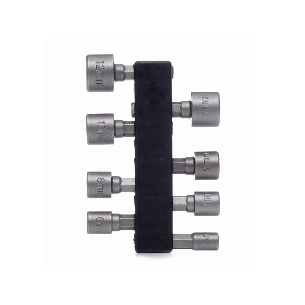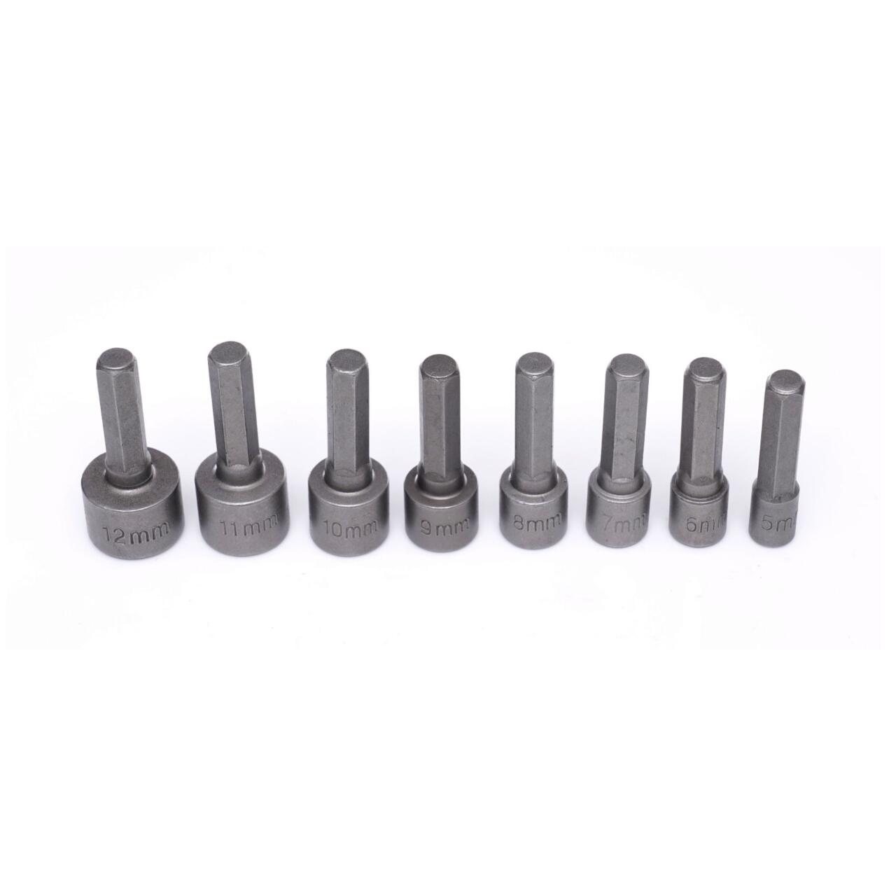 Este un set complet de adaptoare hexagonale cu prindere 1/2", 3/8" si 1/4", in diferite lungimi, compatibile cu majoritatea bormasinilor, autofiletantelor si masinilor de impact.