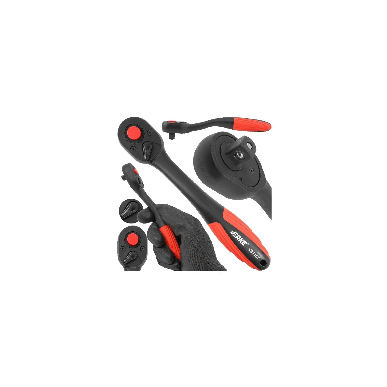 Cheia tubulară are un mecanism care transferă un cuplu mare pătratului, un comutator de viteză R/L situat în cap și un buton de eliberare a cheii.