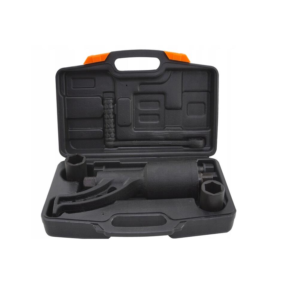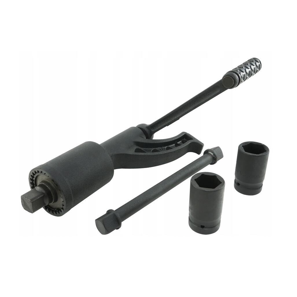 Această cheie se va dovedi utilă oriunde este necesară îndepărtarea șuruburilor puternic prinse de pe roțile camioanelor, vehiculelor agricole sau industriale. Datorită rezistenței sale rezultate din mecanismul angrenajului, cheia poate manevra chiar și cele mai încăpățânate șuruburi. Nu mai trebuie să „stați” pe cheie și să folosiți extensii lungi pentru a slăbi știfturile/piulițele. Cheia are un raport de transmisie de 1:78, datorită căruia generează max. cuplu de 6200 Nm. Aplicați puțină forță și obțineți multă putere. Mânerul ergonomic face ca cheia să se potrivească perfect în mâinile tale. Întregul set este ambalat într-o valiză convenabilă cu compartimente care vor ocupa puțin spațiu în torpedoul mașinii tale. Include prize de 32 mm și 33 mm. Cheia are o tijă de 1". Acest lucru îl face compatibil cu toate prizele cu acest tip de priză de montare.
