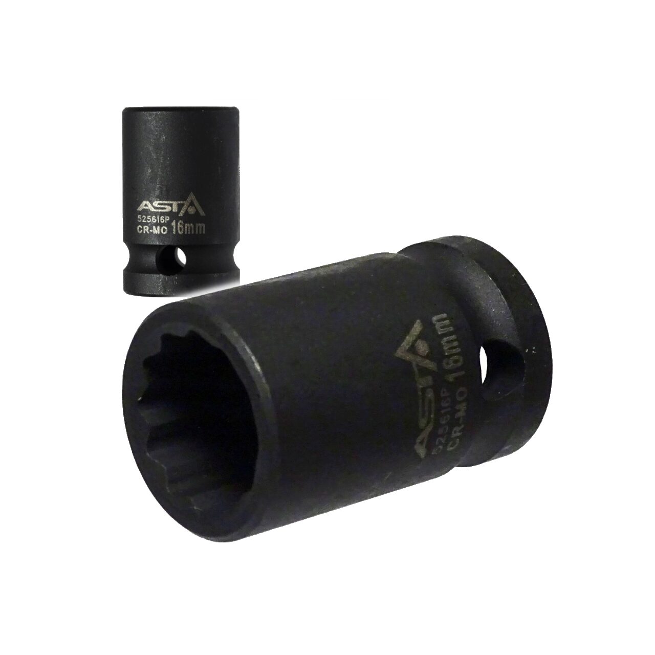 Cheie tubulara de impact 16 mm, 12 colturi, 1/2", Asta