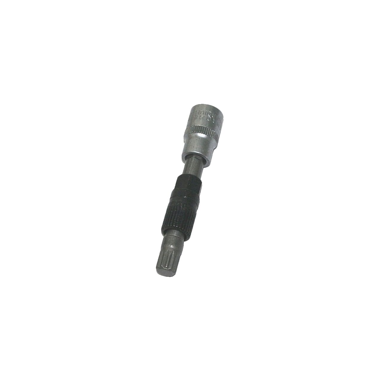 Alternatorul este blocat cu o cheie cu un bit M10, iar roata este rotită cu o piuliță cu 31 de dinți cu un hexagon de 14 mm situată pe tija sculei.