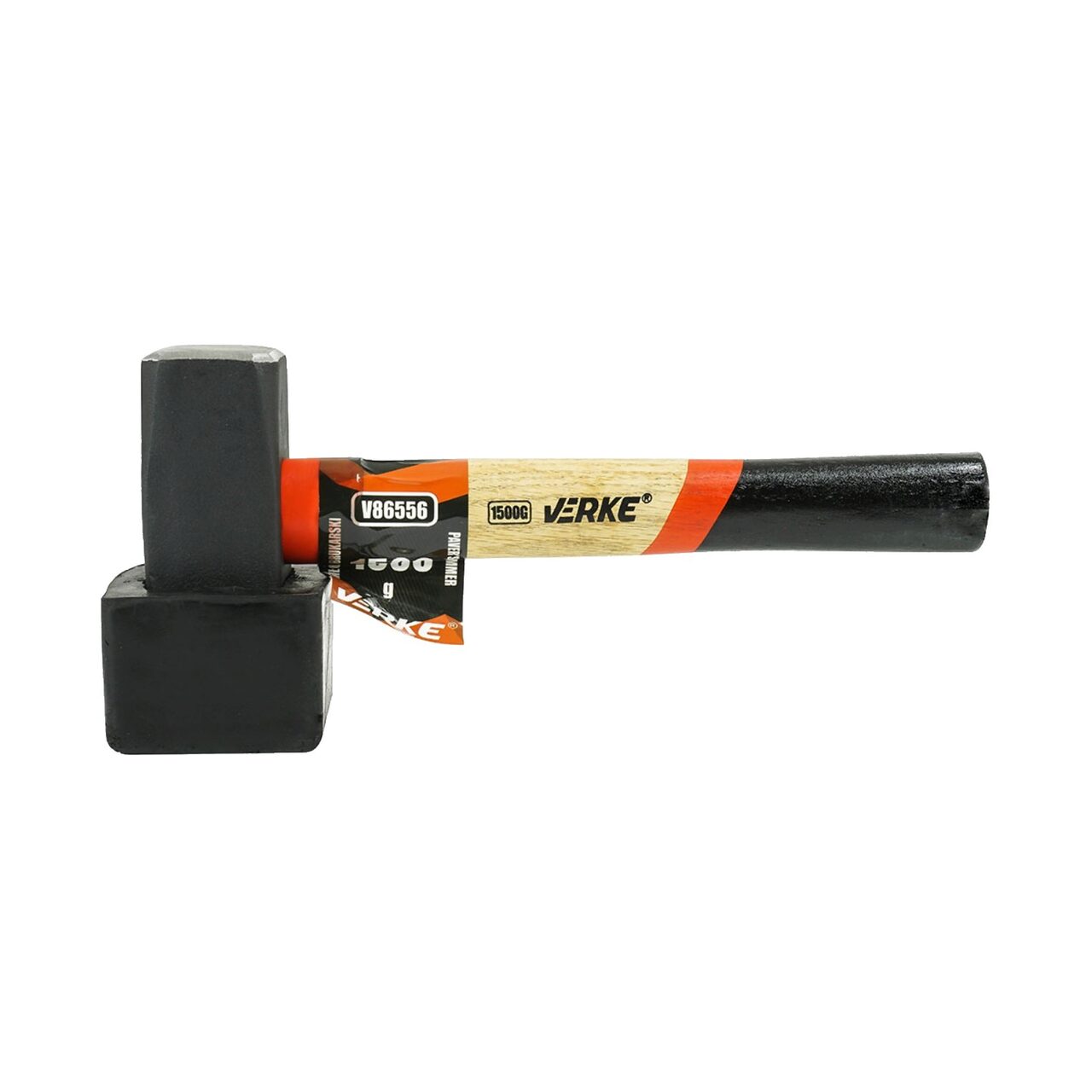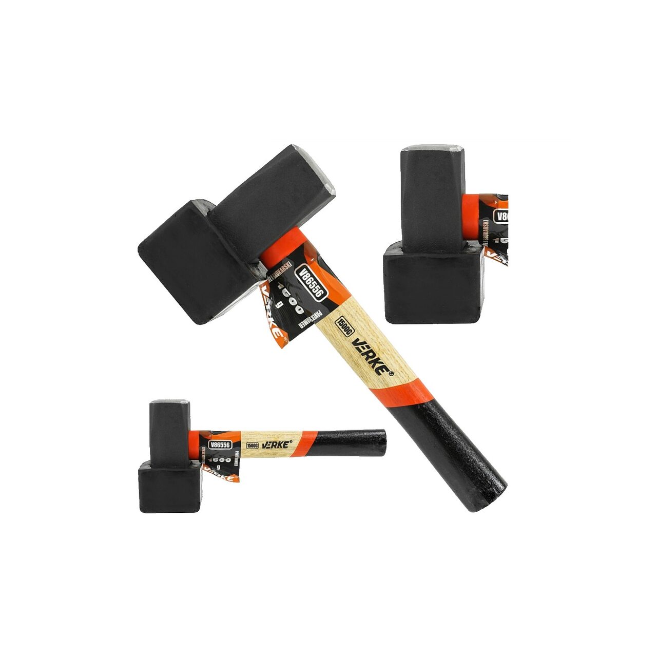 Ciocan din cauciuc cu cap dreptunghiular, 1500 g negru, maner din lemn, Verke