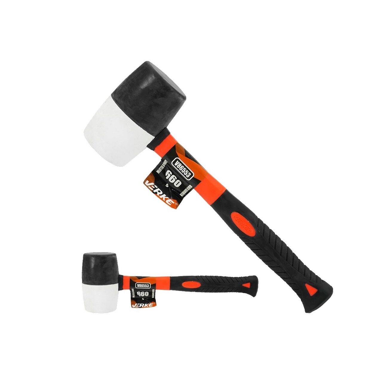 Ciocan din cauciuc cu maner din fibra de sticla, cap rotund 660 g, Verke