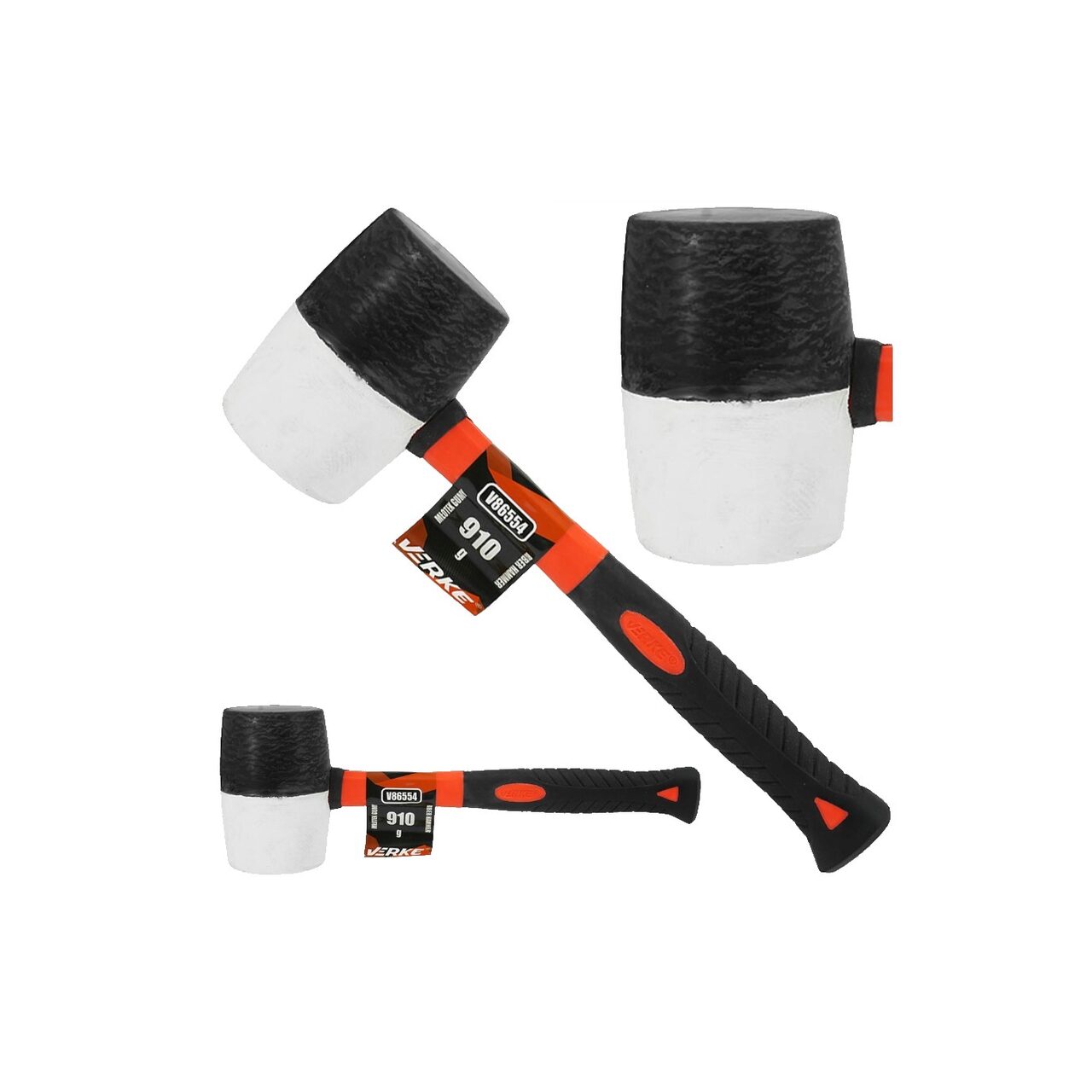 Ciocan din cauciuc cu maner din fibra de sticla, cap rotund 910 g, Verke