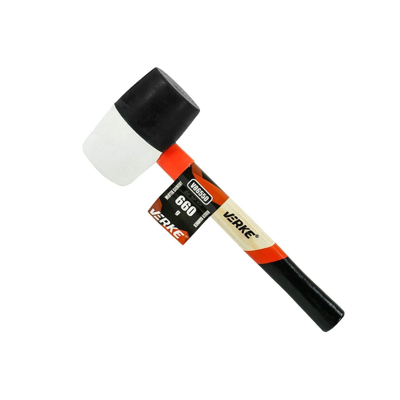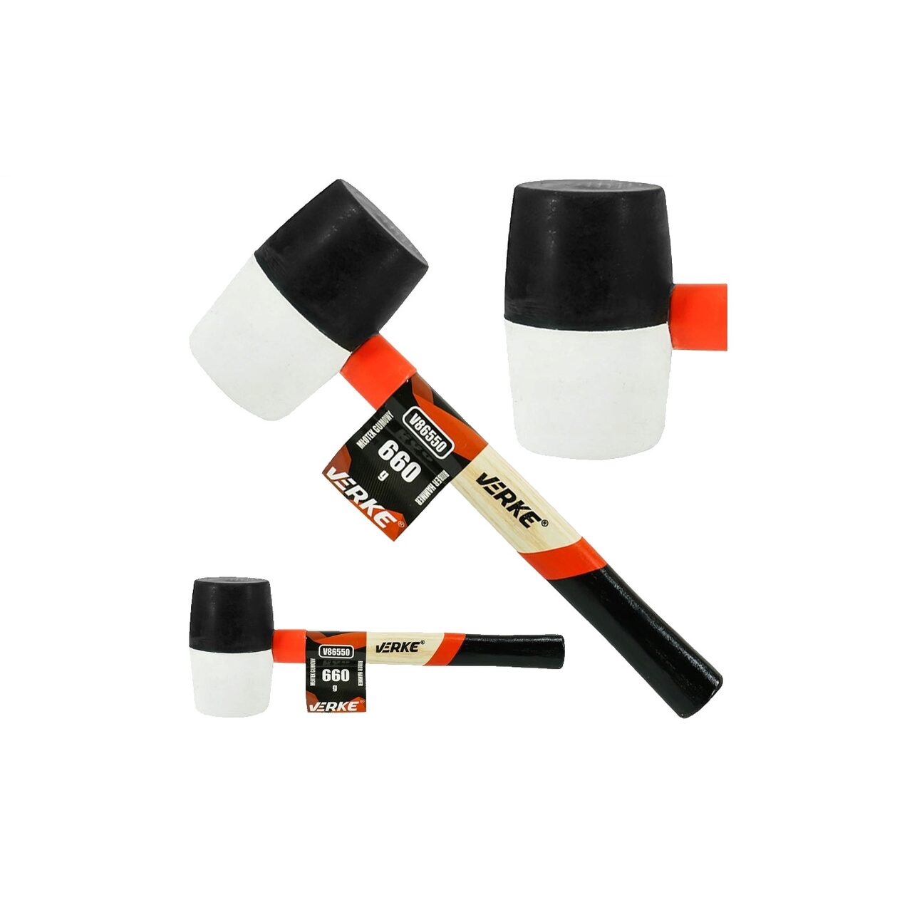 Ciocan din cauciuc cu maner din lemn, cap rotund 660 g, Verke