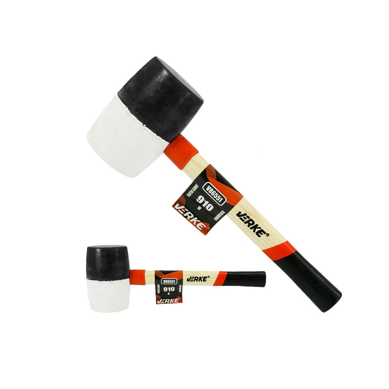 Ciocan din cauciuc cu maner din lemn, cap rotund 910 g, Verke