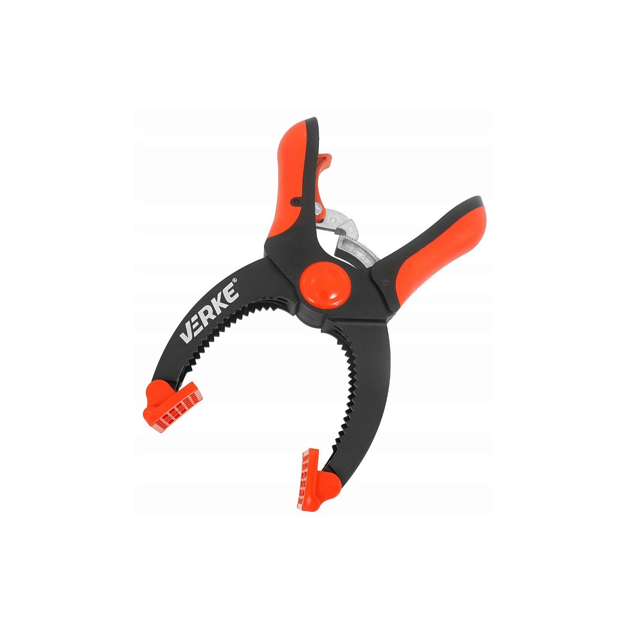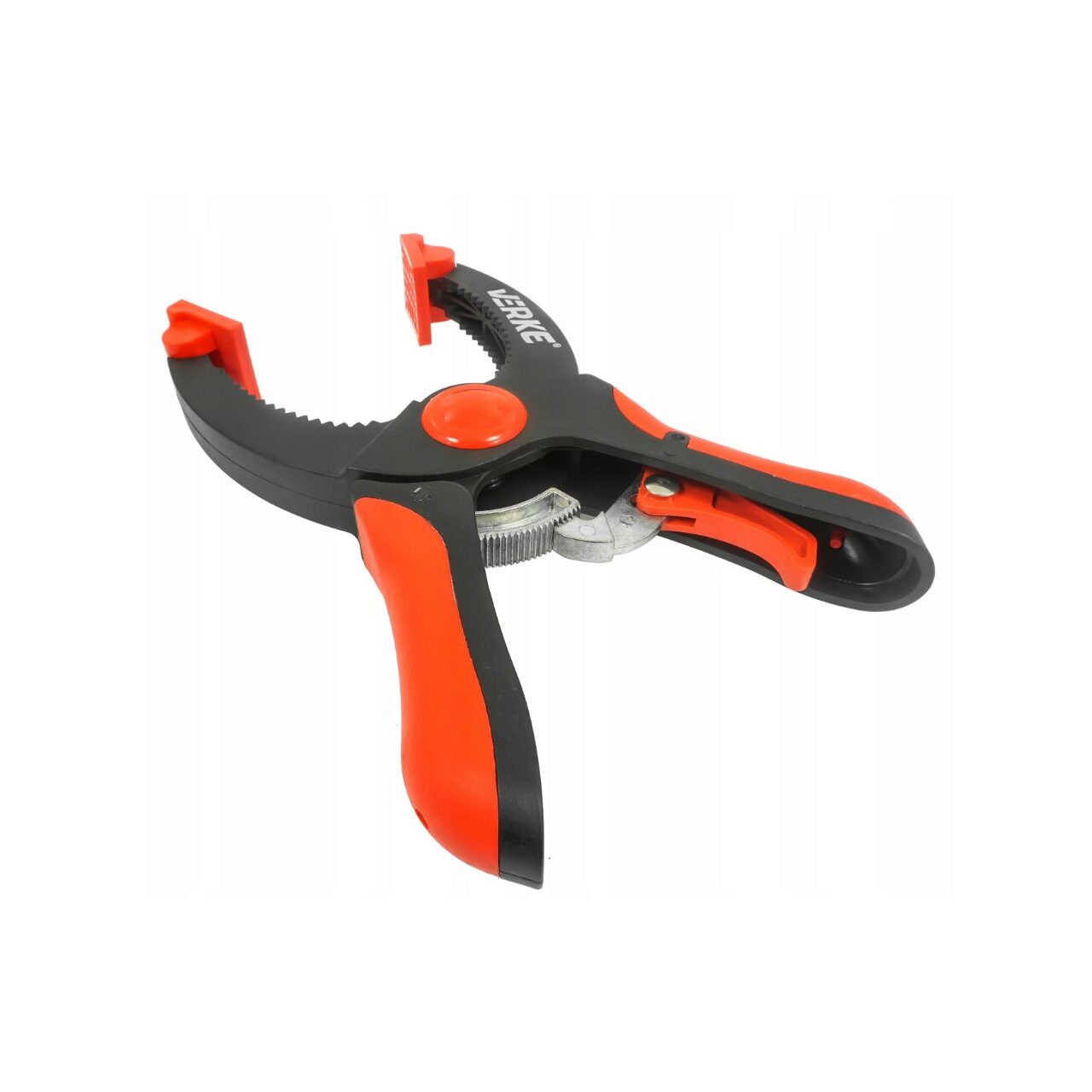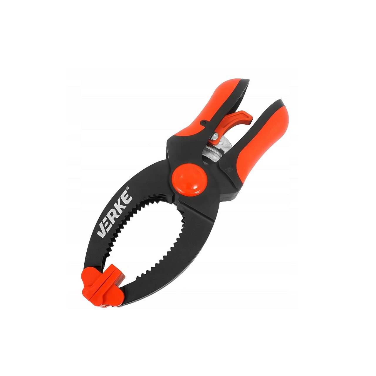 Clemă cu arc cu blocare cu clichet. Permite atașarea rapidă, punct la punct, atunci când lipiți și țineți diferite elemente, de exemplu, în lucrările de tâmplărie și modelare.