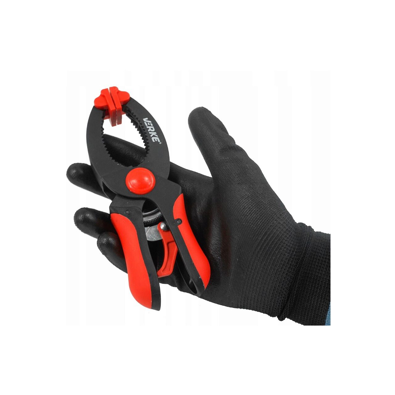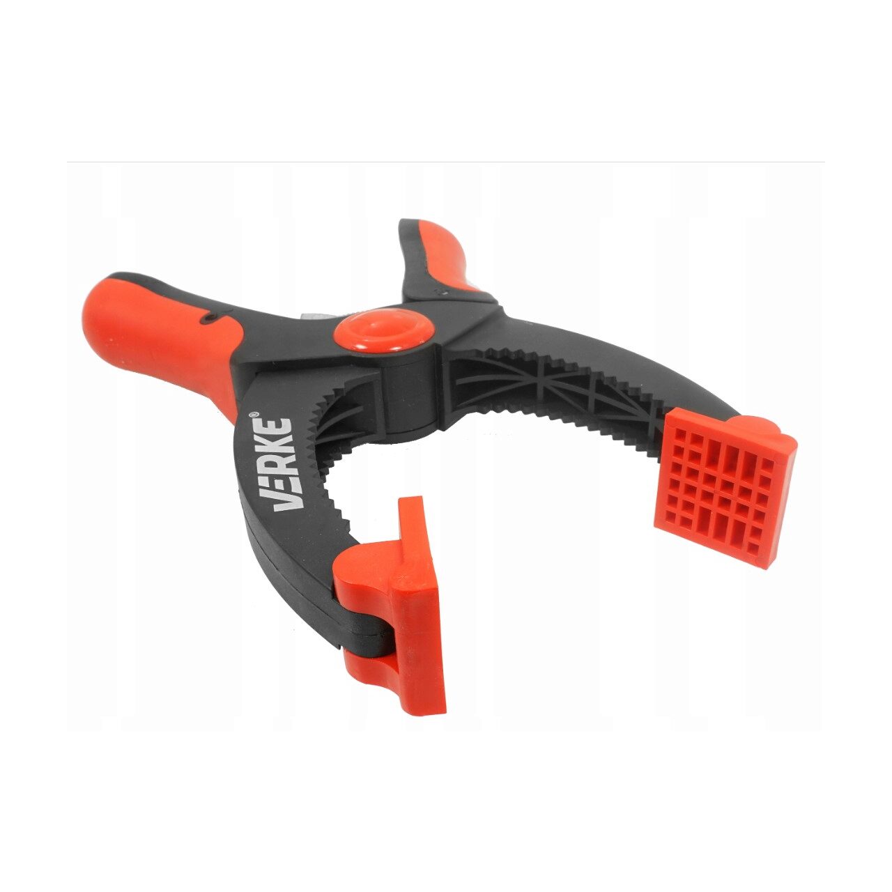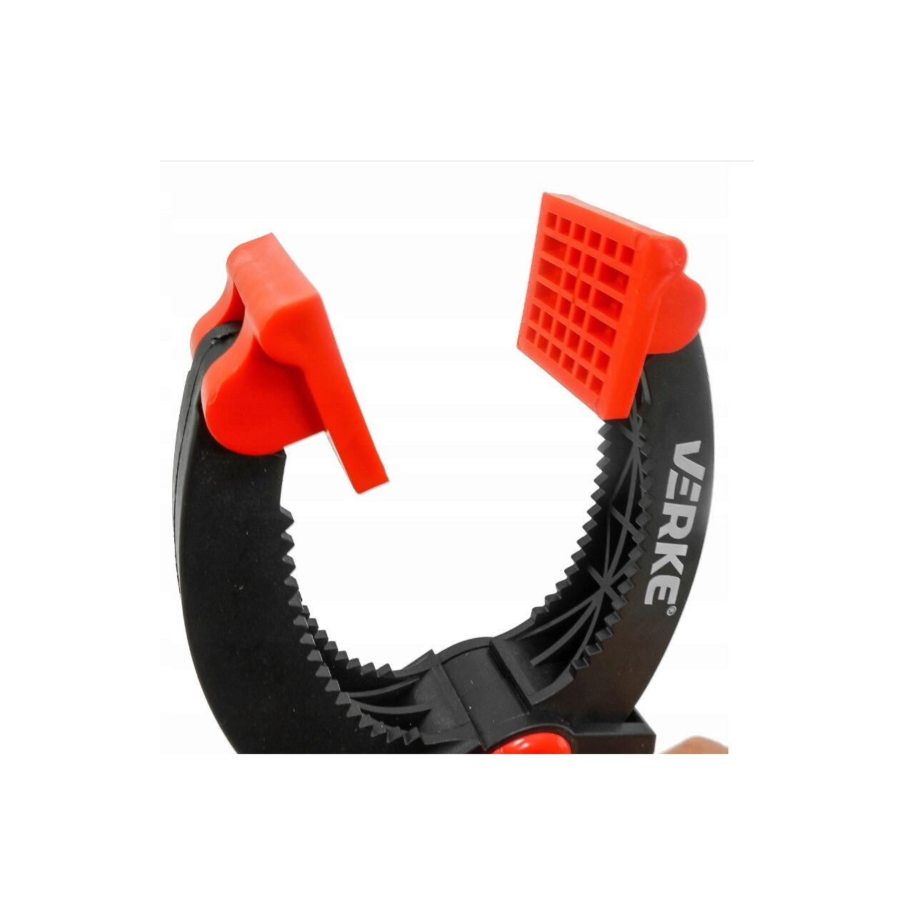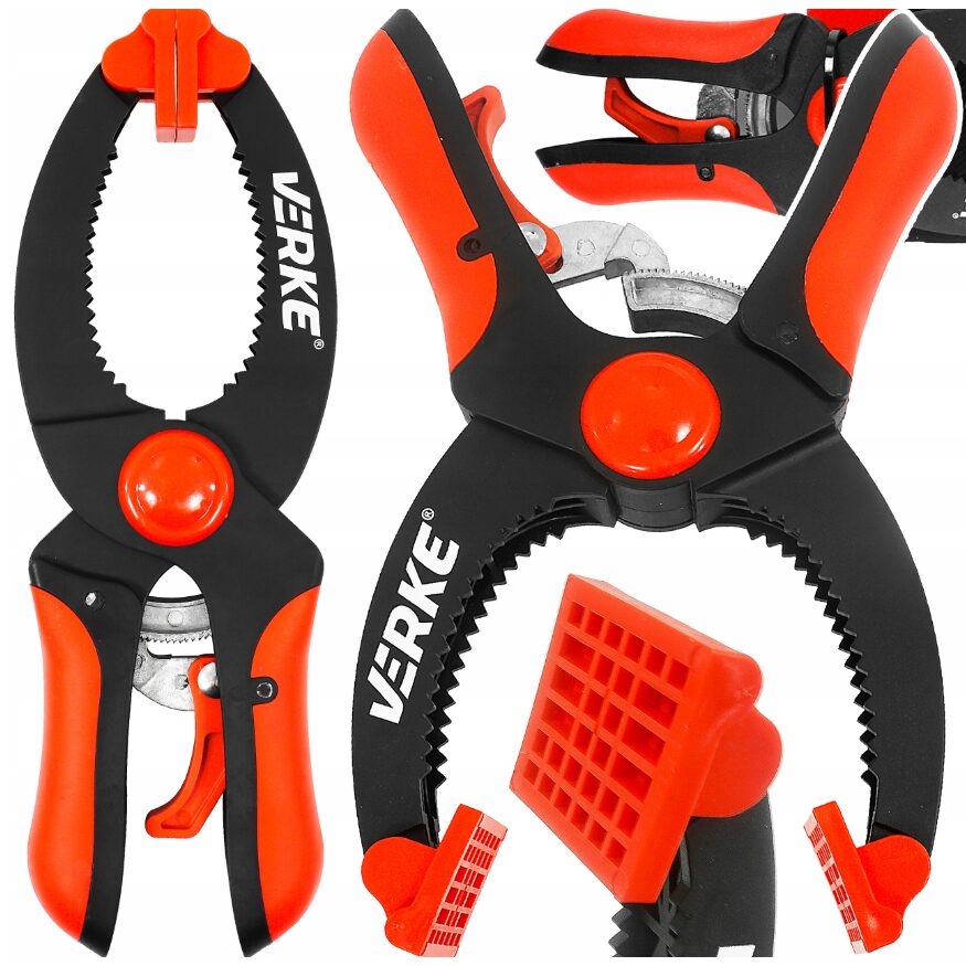 Clemă cu arc cu blocare cu clichet. Permite atașarea rapidă, punct la punct, atunci când lipiți și țineți diferite elemente, de exemplu, în lucrările de tâmplărie și modelare.