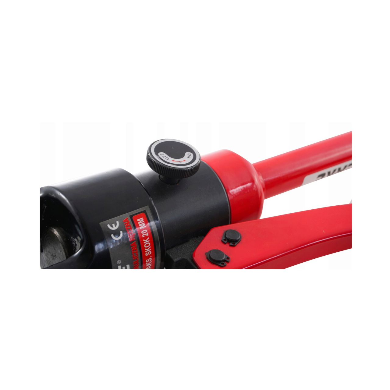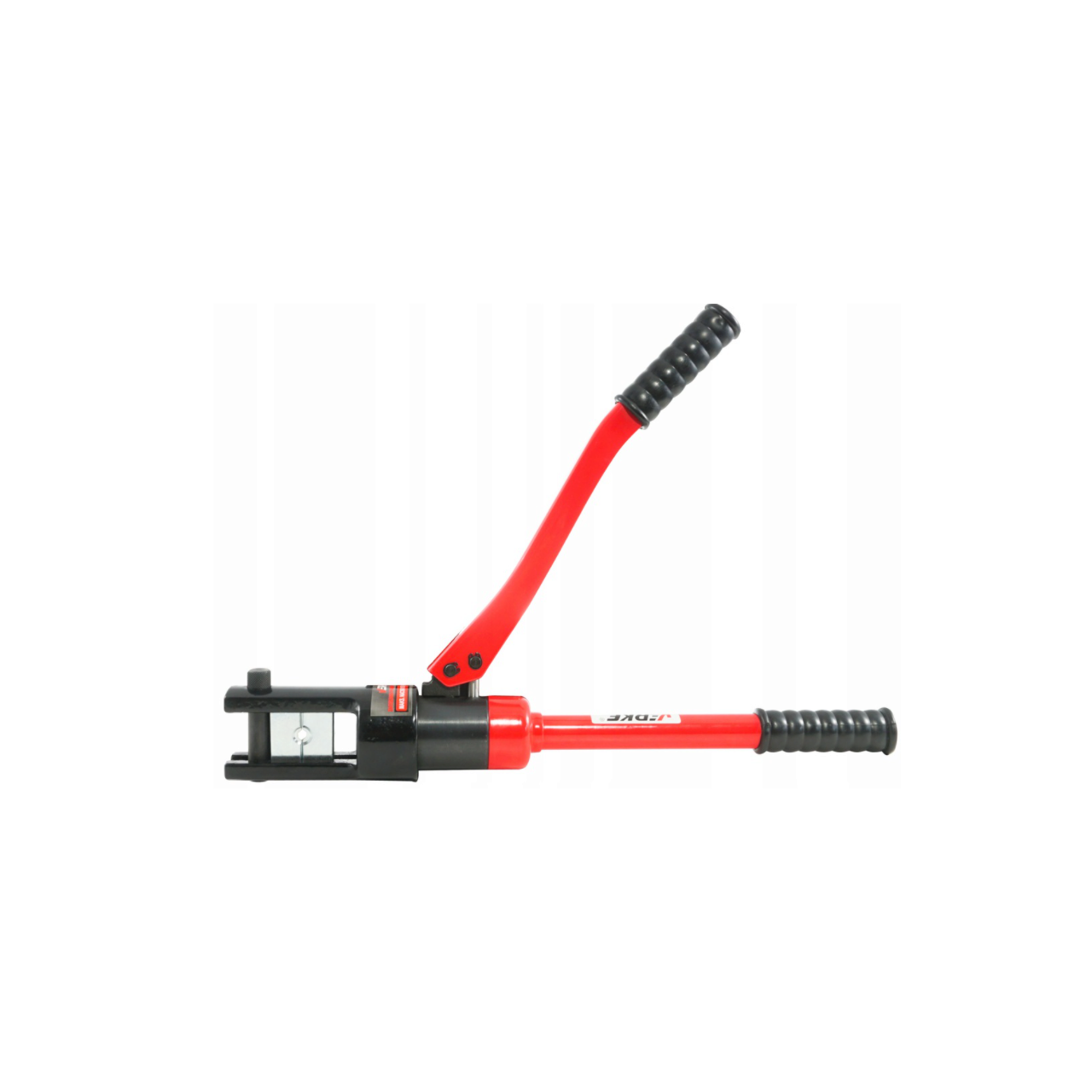 Presă manuală cu cilindru hidraulic. Proiectat pentru sertizarea bornelor pe firele electrice sau pentru prinderea cablurilor. Datorită cilindrului hidraulic, sertizarea terminalelor mari este fără efort. Presa are un cap rotativ. Lungimea sertzorului este de aproximativ 47 cm. Matrice în set: 10, 16, 25, 35, 50, 70, 95, 120, 150, 185, 240, 300 mm2