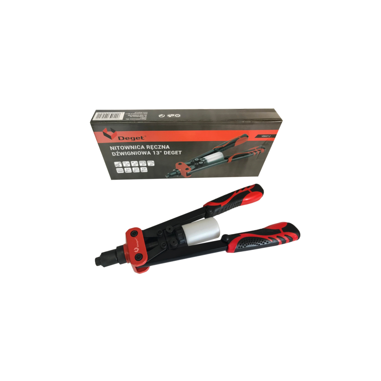 Nituitoare manuală concepută pentru nituri de rupere din aluminiu, cupru, oțel și oțel inoxidabil în intervalul de la 3,2 mm la 4,8 mm. Corp și mâner din oțel carbon. Mecanismul de tragere are trei fălci. Datorită grosimii adecvate a peretelui și lungimii brațului selectate corespunzător, folosim unealta de nituire fără a folosi cantități mari de forță. Containerul pentru miezurile de nit sparte menține locul de muncă curat.