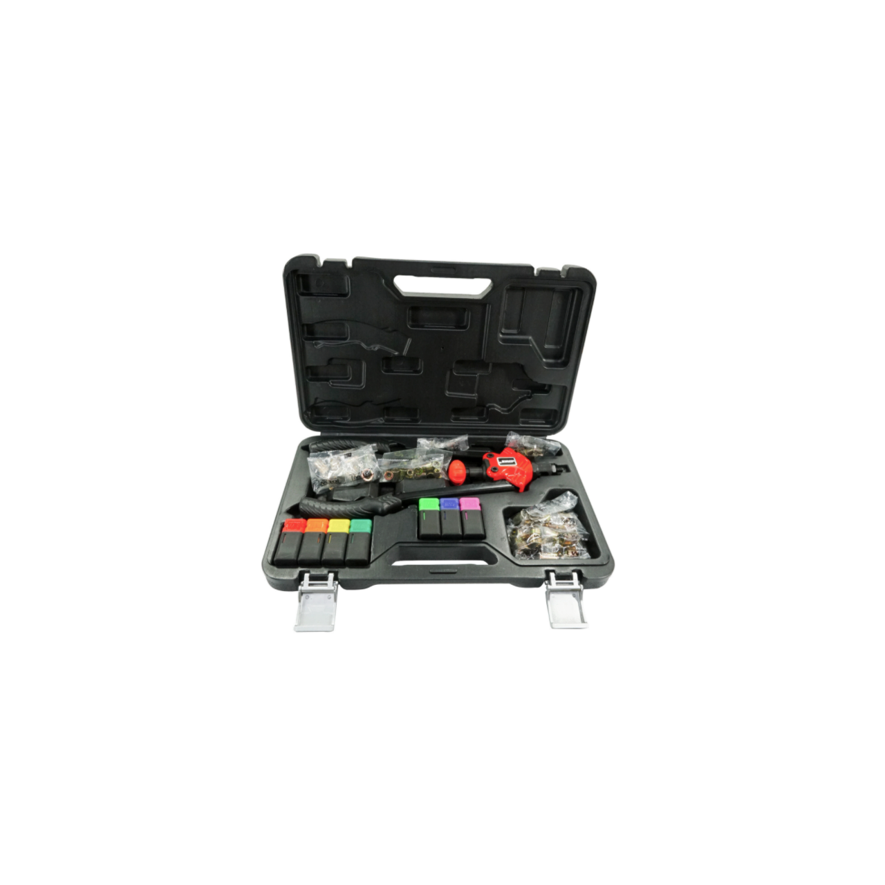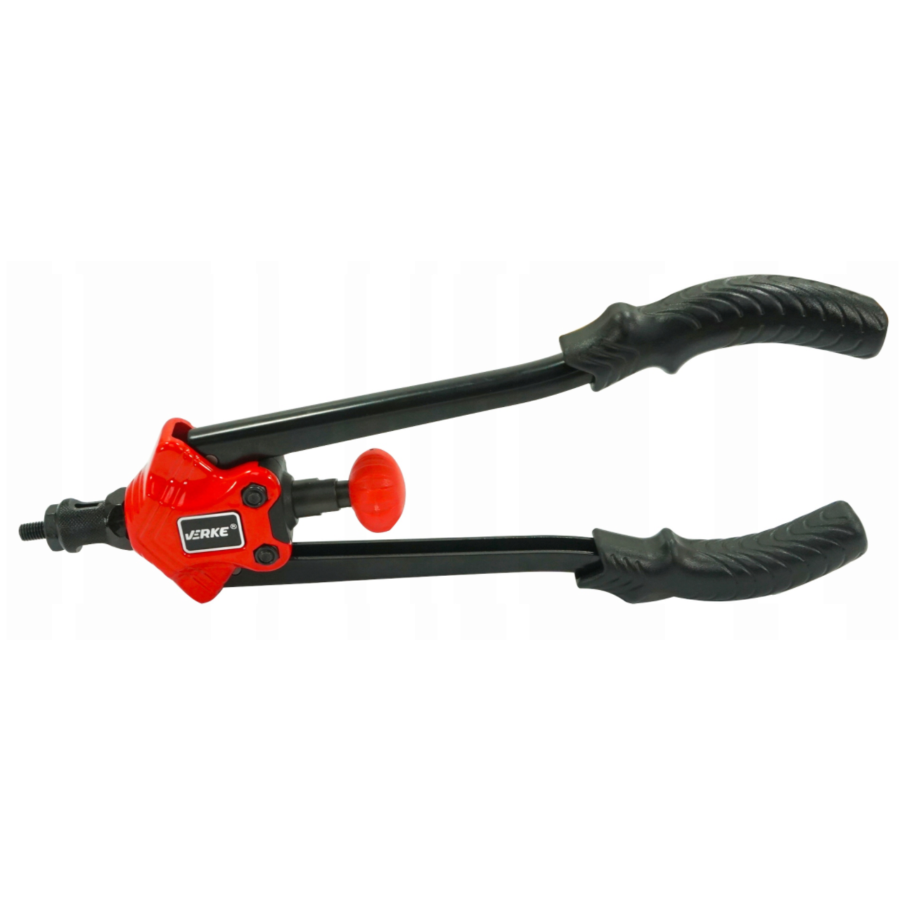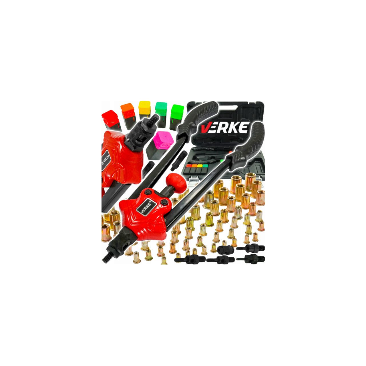Nituitoare manuală pentru piulițe cu nituri VERKE M3-M12. Nituitoarea este proiectată pentru a conecta materiale cu piulițe pentru nituri. Realizează conexiuni materiale folosind un manșon filetat intern. Acest lucru permite înșurubarea elementelor suplimentare cu șuruburi pentru metal sau șuruburi. Fabricat din oțel durabil de scule CrMo crom-molibden. Mânere acoperite cu căptușeală din cauciuc anti-alunecare. Totul într-o valiză confortabilă și practică.