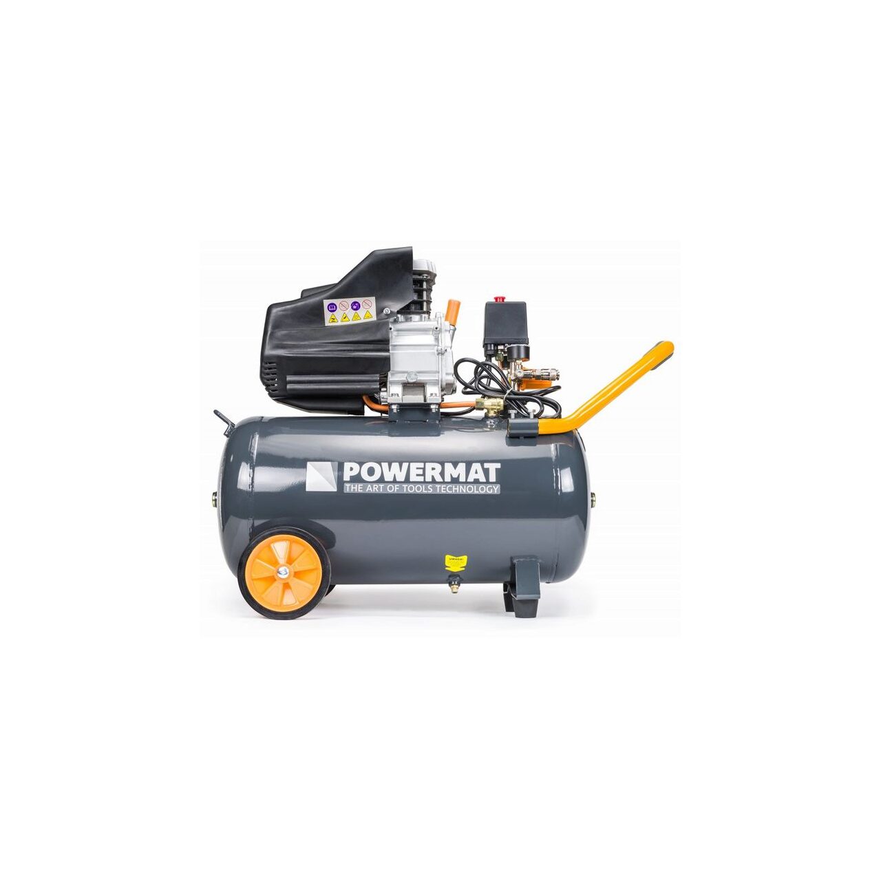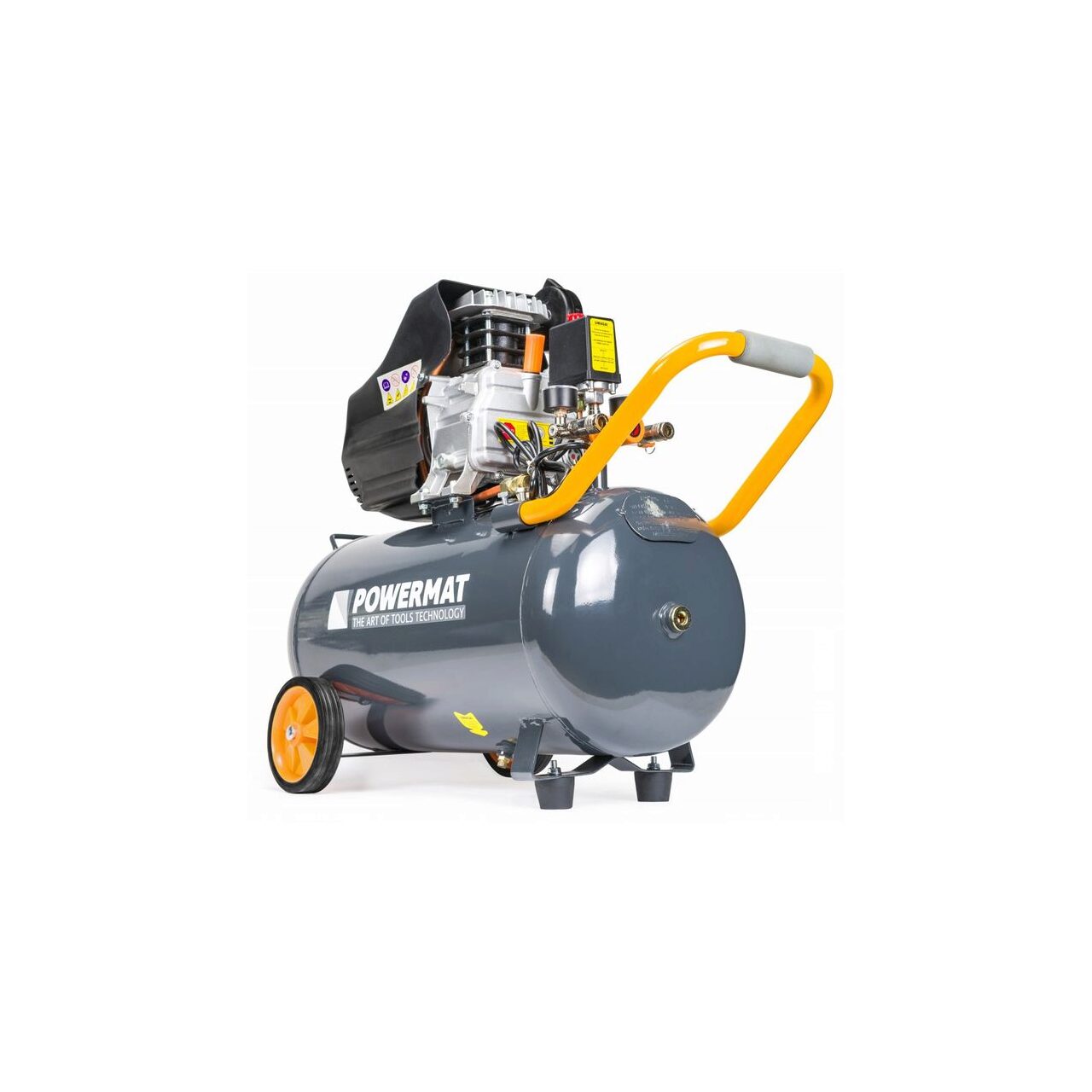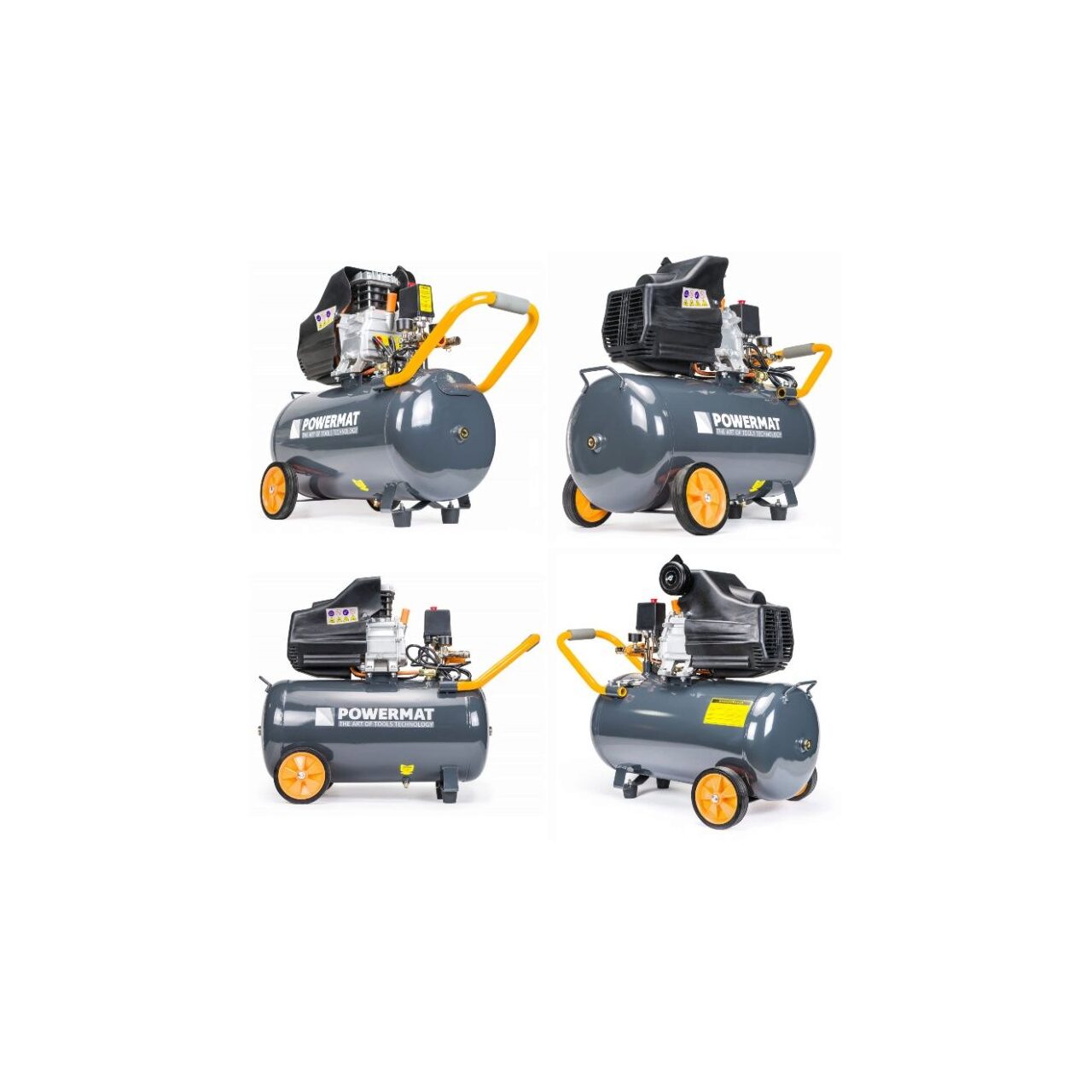 Compresorul cu un singur piston asigură o presiune de 8 bar în rezervor și o capacitate eficientă de 206L/min. Compresorul este alimentat de un motor electric de 1.85kW / 2.5KM.Cilindrul masiv al compresorului este realizat din fontă, care asigură un grad ridicat de fiabilitate. Masa mare a cilindrului disipează în mod corespunzător căldura, astfel încât compresorul să nu se supraîncălzească în timpul funcționării. Toate conductele de intrare și de ieșire sunt din cupru, ceea ce asigură disiparea adecvată a căldurii. Compresorul PM-KO-50T de la marca poloneză POWERMAT este un dispozitiv conceput pentru vopsire (elemente / suprafețe mai mici), suflare, pompare, curățare și activități similare. Avantajele valoroase ale compresoarelor noastre sunt costurile de operare reduse, multitasking, precizia.