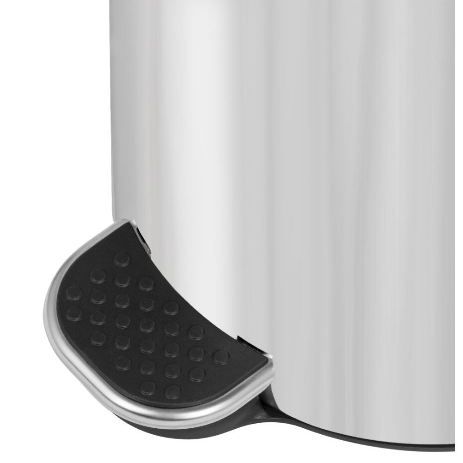 Coșul de gunoi cu pedală este echipat cu un capac care acoperă eficient deșeurile, împiedicând mirosurile neplăcute să iasă. Mecanismul pedalei a fost testat timp de 10.000 de cicluri de deschidere și închidere, asigurând performanțe de lungă durată. Caracteristici suplimentare, cum ar fi mânerul de transport ascuns în balama și sistemul „click lock”, care permite blocarea capacului în poziția deschisă, sporesc confortul utilizatorului. În interiorul coșului de gunoi se află o găleată detașabilă din plastic, cu mânere practice, care facilitează golirea și ascund eficient marginile sacului de gunoi.