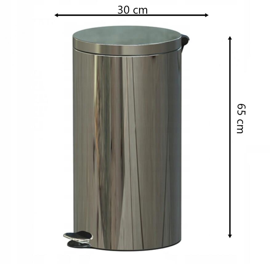 Cos de gunoi cu pedala, otel inoxidabil, capacitate 30 litri, 92 x 65 x 30 cm, argintiu, lucios, PowerX