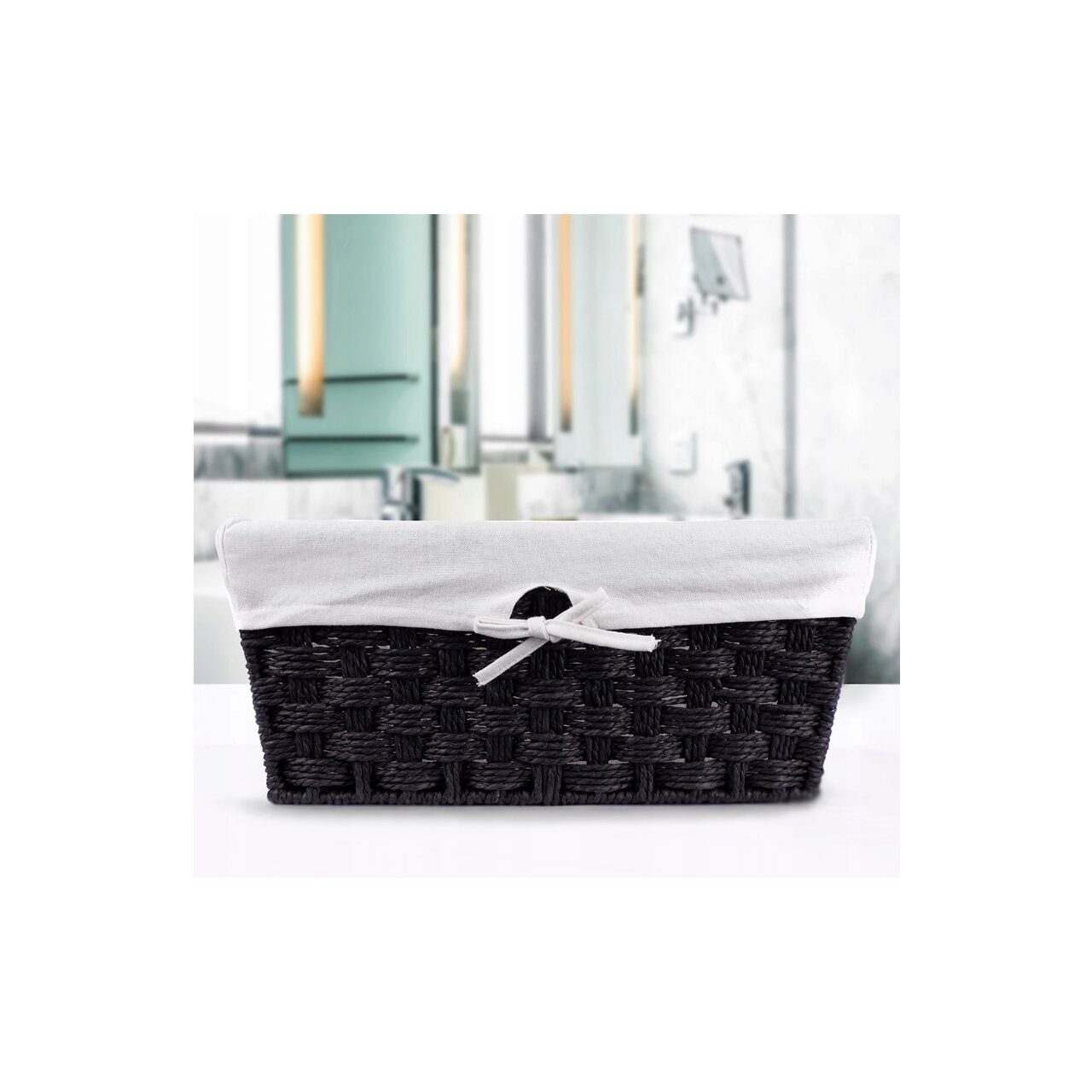 Coș din șnur împletit de hârtie de orez. Căptușeală detașabilă în interiorul coșului .