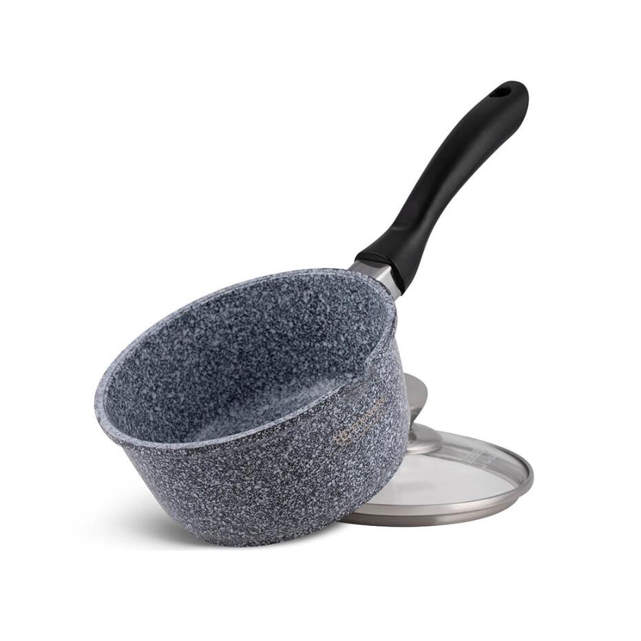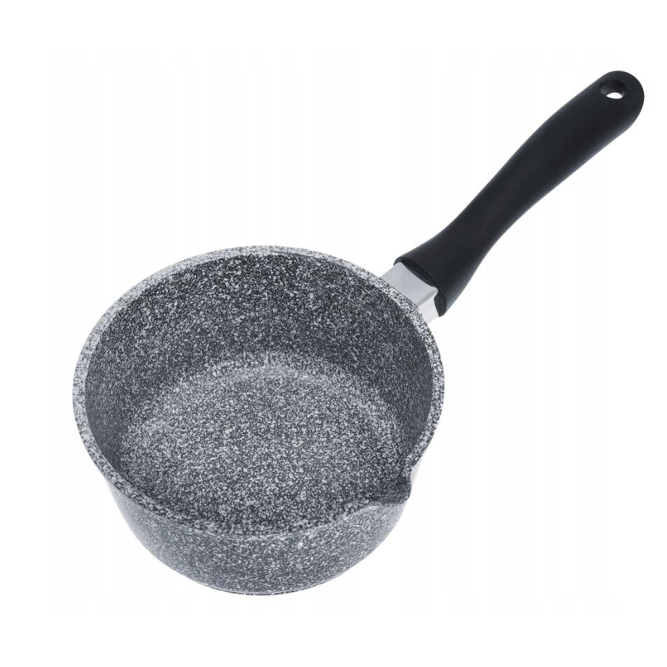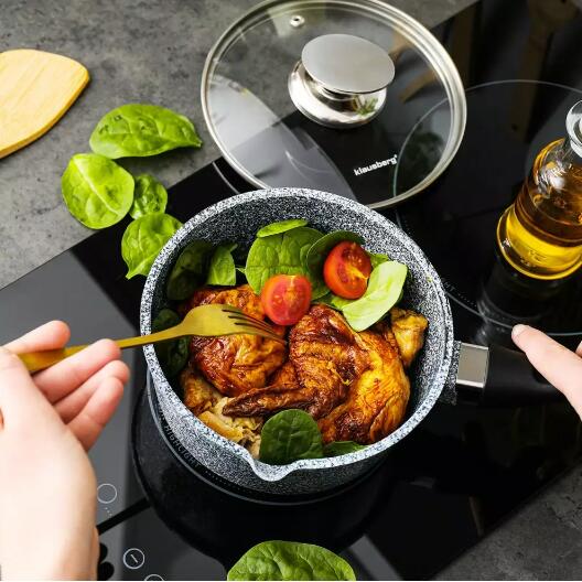O cratiță din aluminiu turnat sub presiune, rezistentă la căldură, cu un strat de ceramică marmorată pentru gătit sănătos.