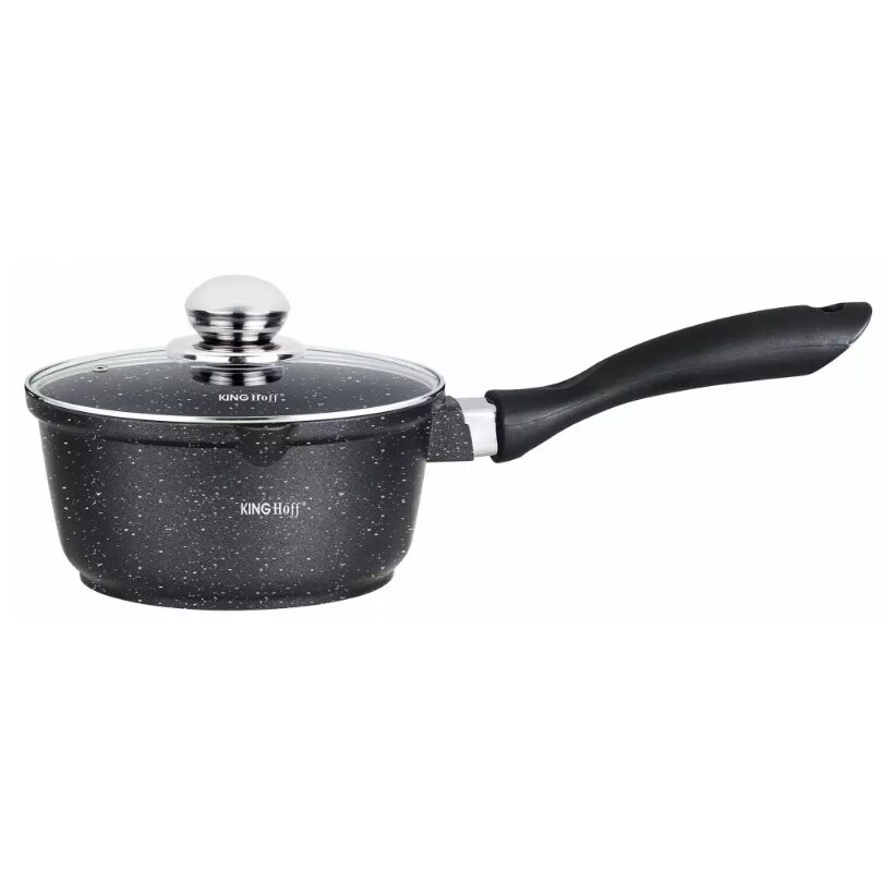Cratita din aluminiu turnat, cu strat marmorat, cu capac din sticla, 16 cm, 1.3 litri, negru, Kinghoff