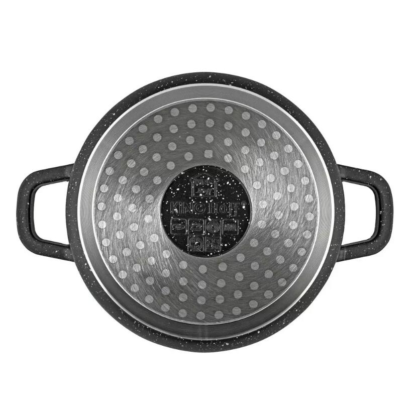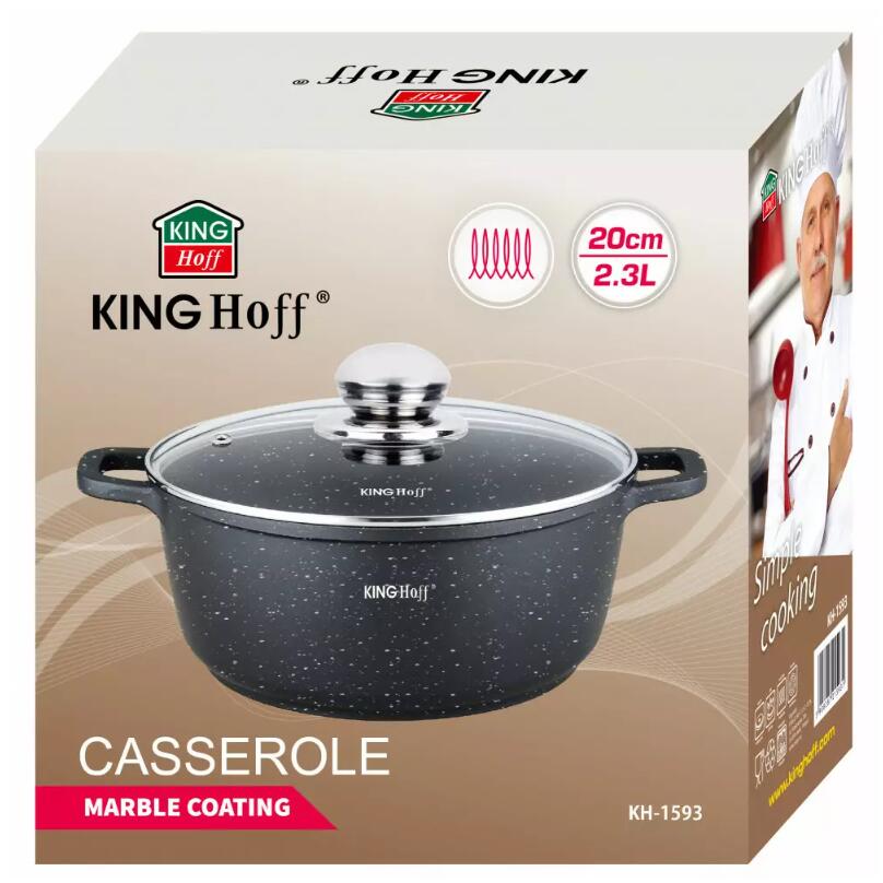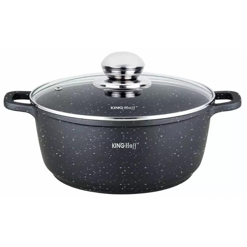 Cratita din aluminiu turnat, cu strat marmorat, cu capac din sticla, 20 cm, 2.3 litri, negru, Kinghoff