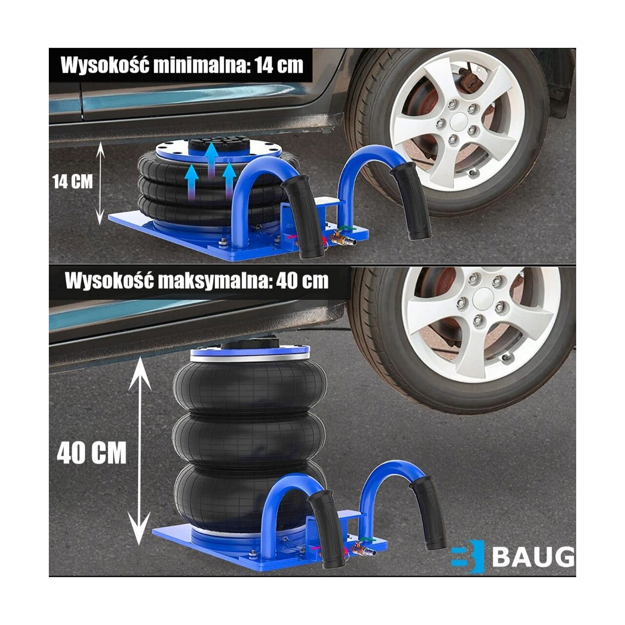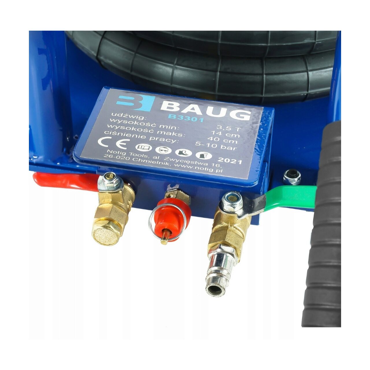 Ridicatorul pneumatic de perne este un echipament profesional care poate fi folosit cu succes, printre altele. în uzine de vulcanizare și ateliere auto, sau în ferme. Acest om de zăpadă poate ridica vehicule cu o greutate de până la 3,5 tone în puncte. În interiorul pernei , se folosește un telescop intern de înaltă calitate pentru a asigura stabilitatea structurii chiar și sub sarcină maximă. Setul include un inel de cauciuc liber care protejează pragurile și alte elemente portante împotriva zgârieturilor sau deteriorării. Cauciucul permite ridicarea în siguranță și ușurează localizarea cricului la locul potrivit, ceea ce accelerează semnificativ și facilitează munca. Ascensorul este alimentat de aer comprimat cu o presiune de lucru de la 5 la max 10 bar .