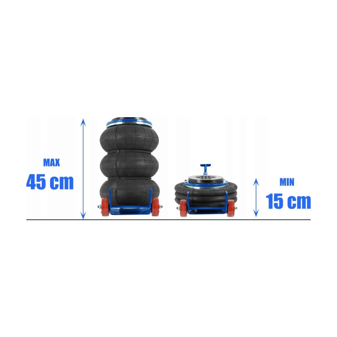 Ridicatorul pneumatic de perne este un echipament profesional care poate fi folosit cu succes, printre altele. în uzine de vulcanizare și ateliere auto, sau în ferme. Acest om de zăpadă poate ridica vehicule cu o greutate de până la 6 tone în puncte. În interiorul pernei , se folosește un telescop intern de înaltă calitate pentru a asigura stabilitatea structurii chiar și sub sarcină maximă. Setul include un inel de cauciuc liber care protejează pragurile și alte elemente portante împotriva zgârieturilor sau deteriorării. Cauciucul permite ridicarea în siguranță și ușurează localizarea cricului la locul potrivit, ceea ce accelerează semnificativ și facilitează munca. Ascensorul este alimentat de aer comprimat cu o presiune de lucru de la 5 la max 10 bar