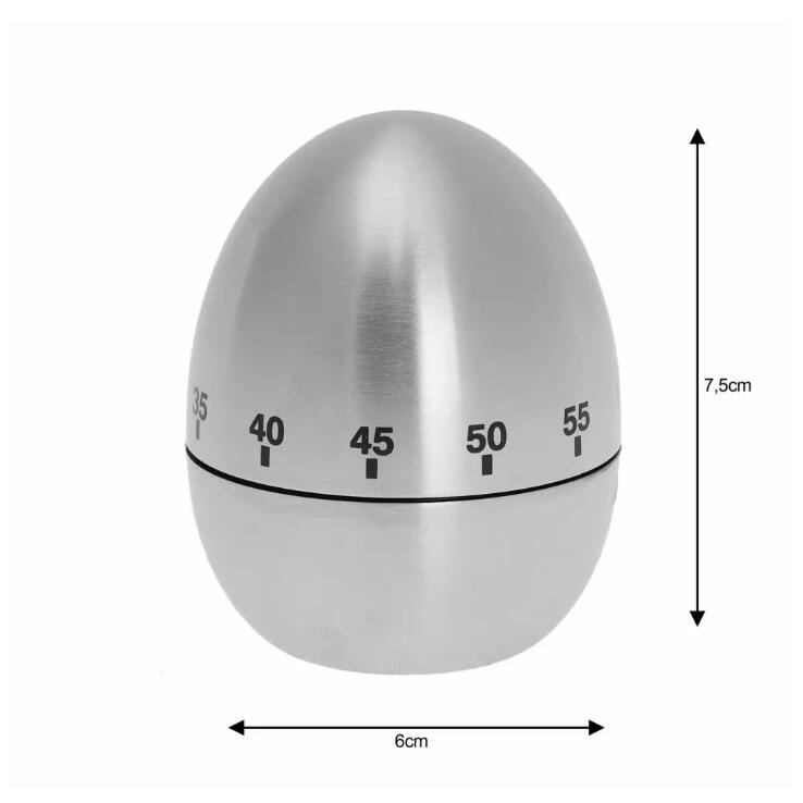Cronometru de bucătărie mecanic în formă de ou din oțel inoxidabil.