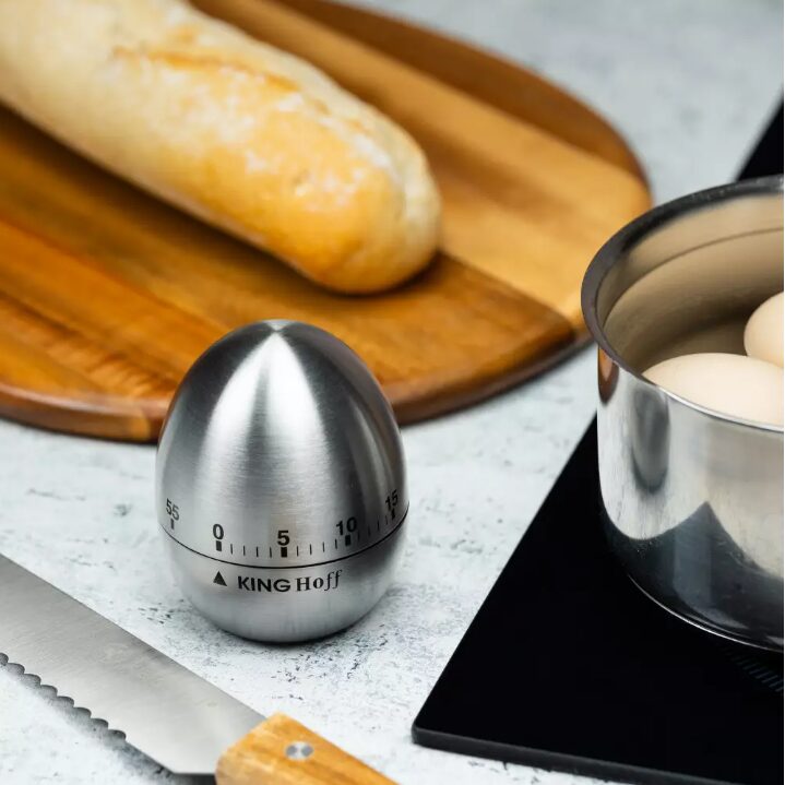 Cronometru de bucatarie tip ou din otel, 60x75 mm, 60 minute, gri, inox, Kinghoff