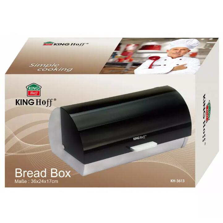 Cutie pentru depozitat paine, din bambus, negru, 36 x 21 x 17 cm, Kinghoff