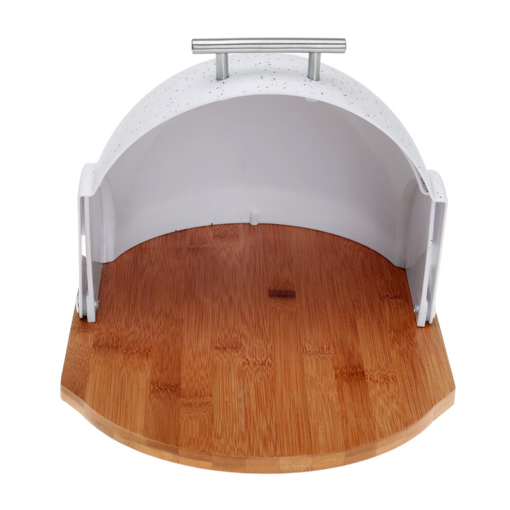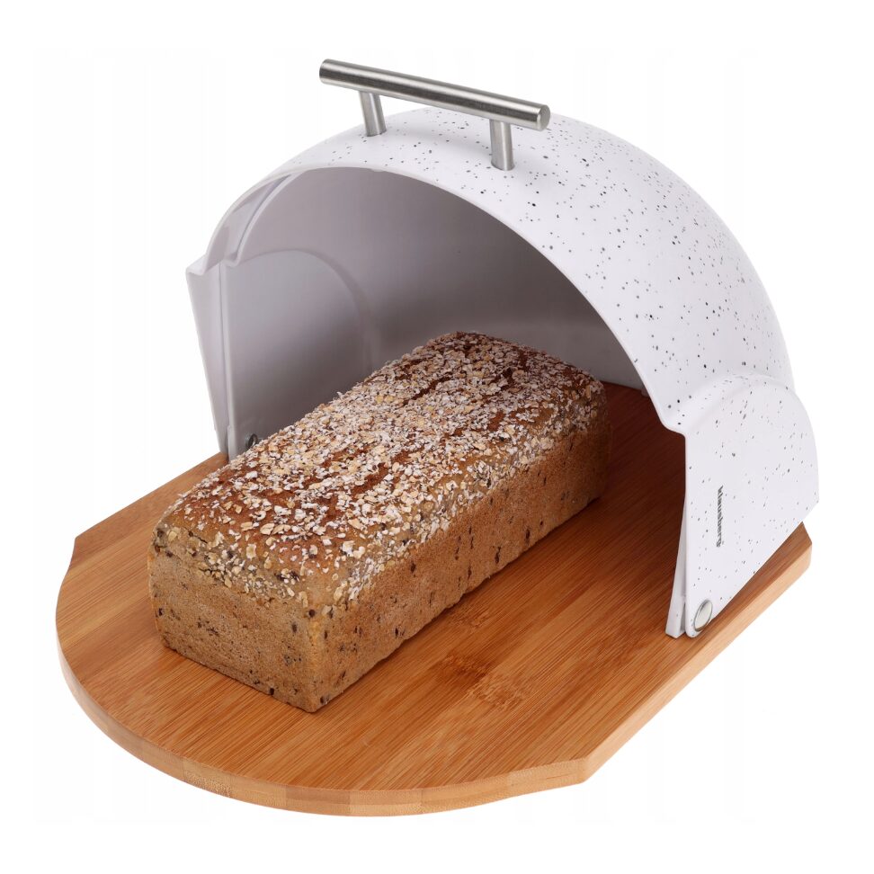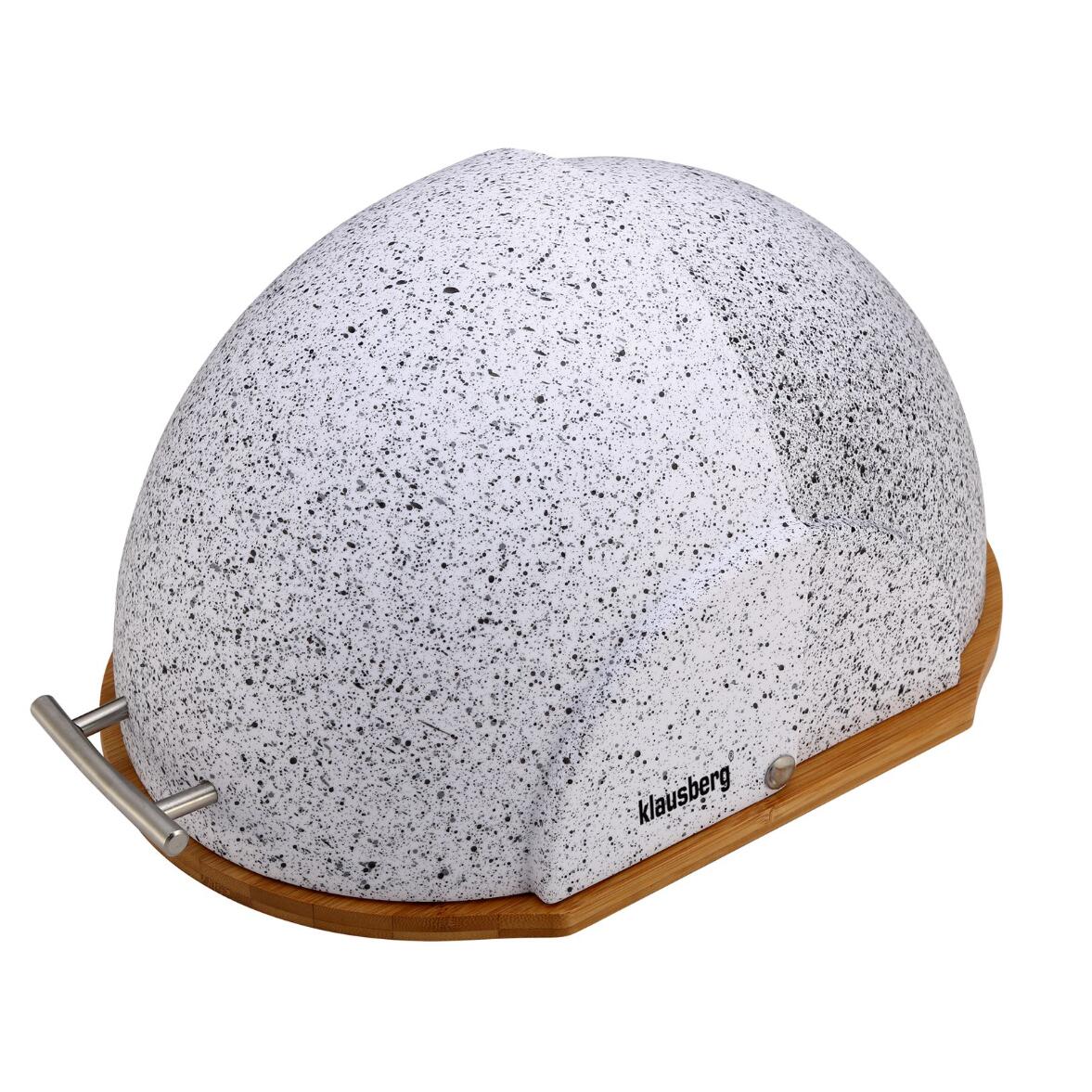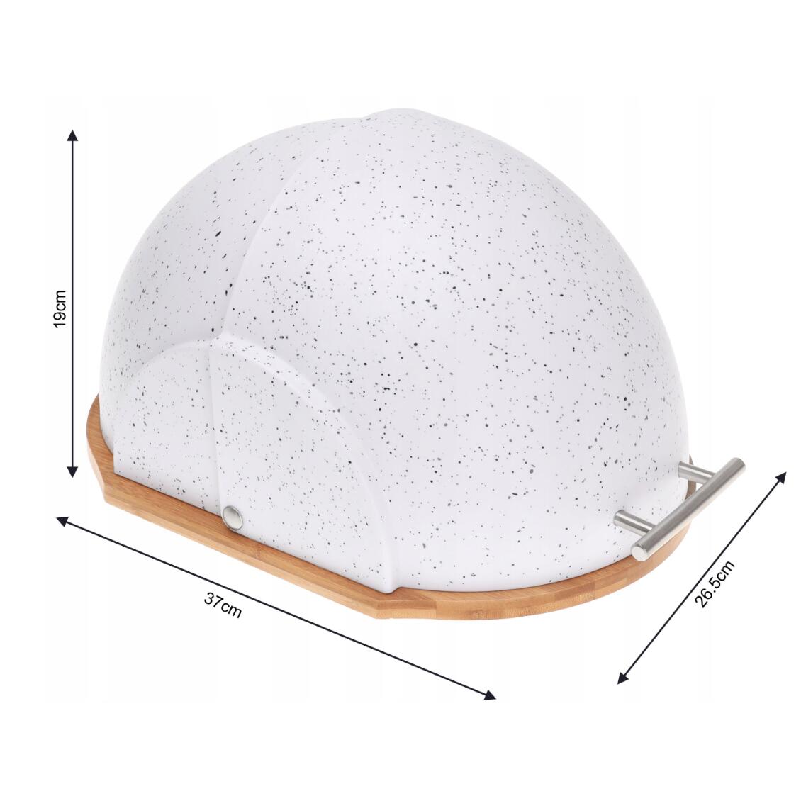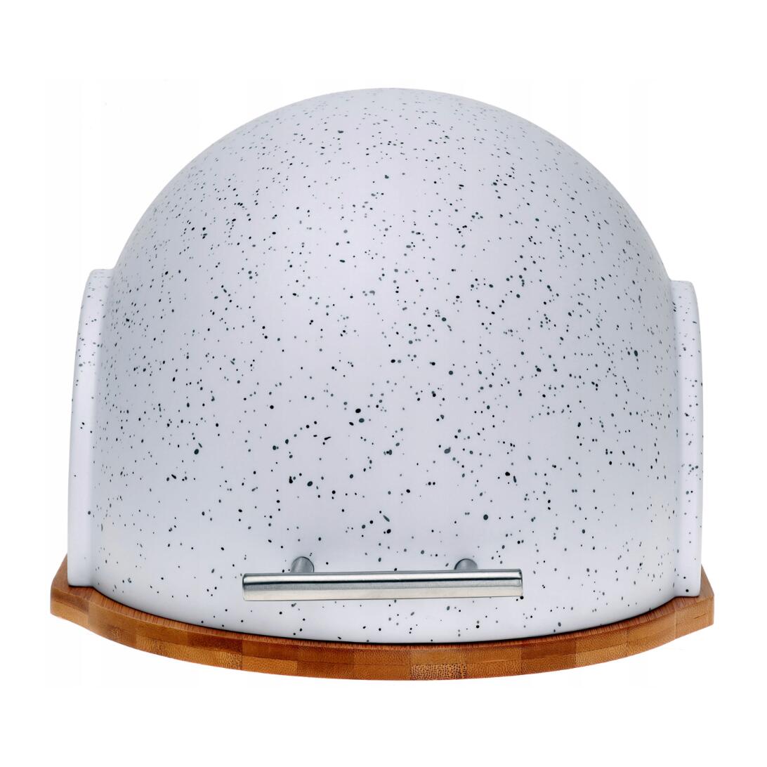 Cutie pentru paine, din acril-bambus, alb marmorat, rotund, Klausberg
