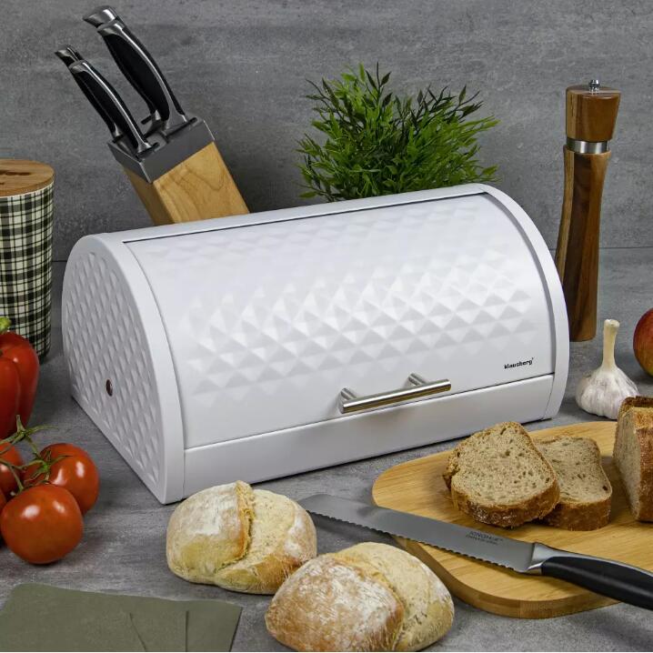 O cutie de pâine solidă, metalică, vă permite să păstrați pâinea, păstrându-o proaspătă mai mult timp. Aspectul său modern atrage atenția.